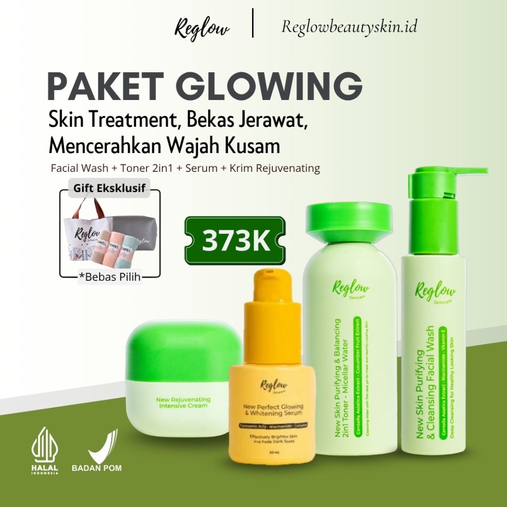 Reglow Paket Lengkap 4 Item (FW, TONER, DC, SERUM) Memudarkan Bekas Jerawat Mencerahkan Wajah