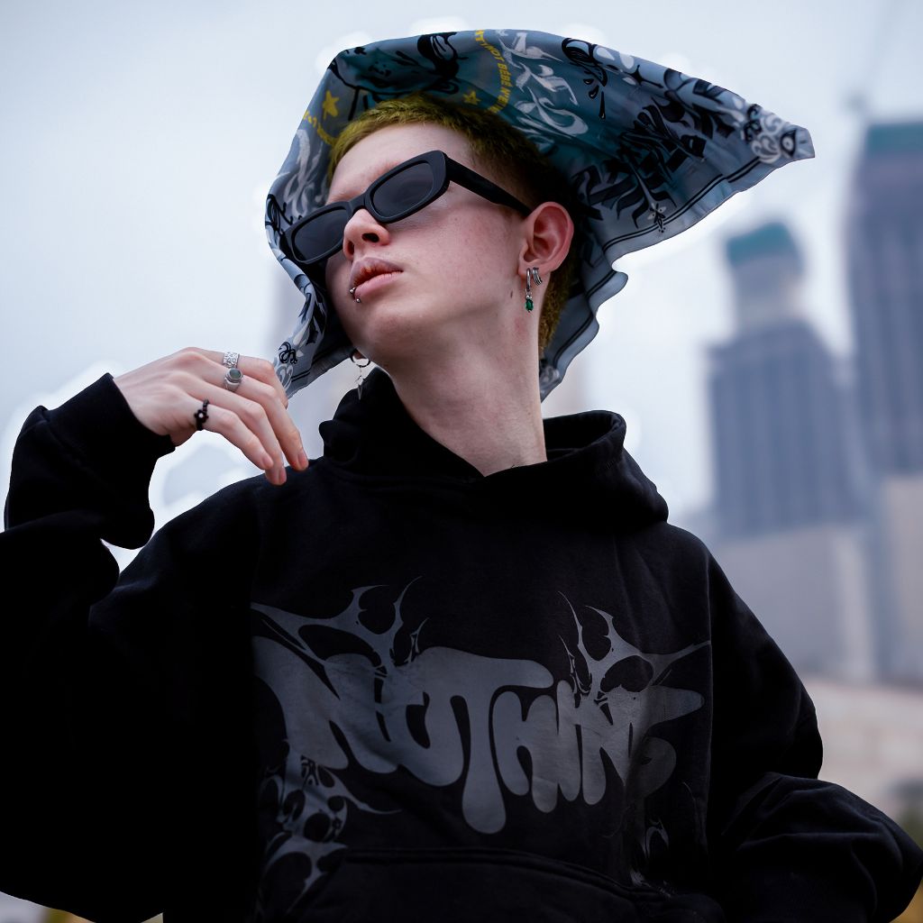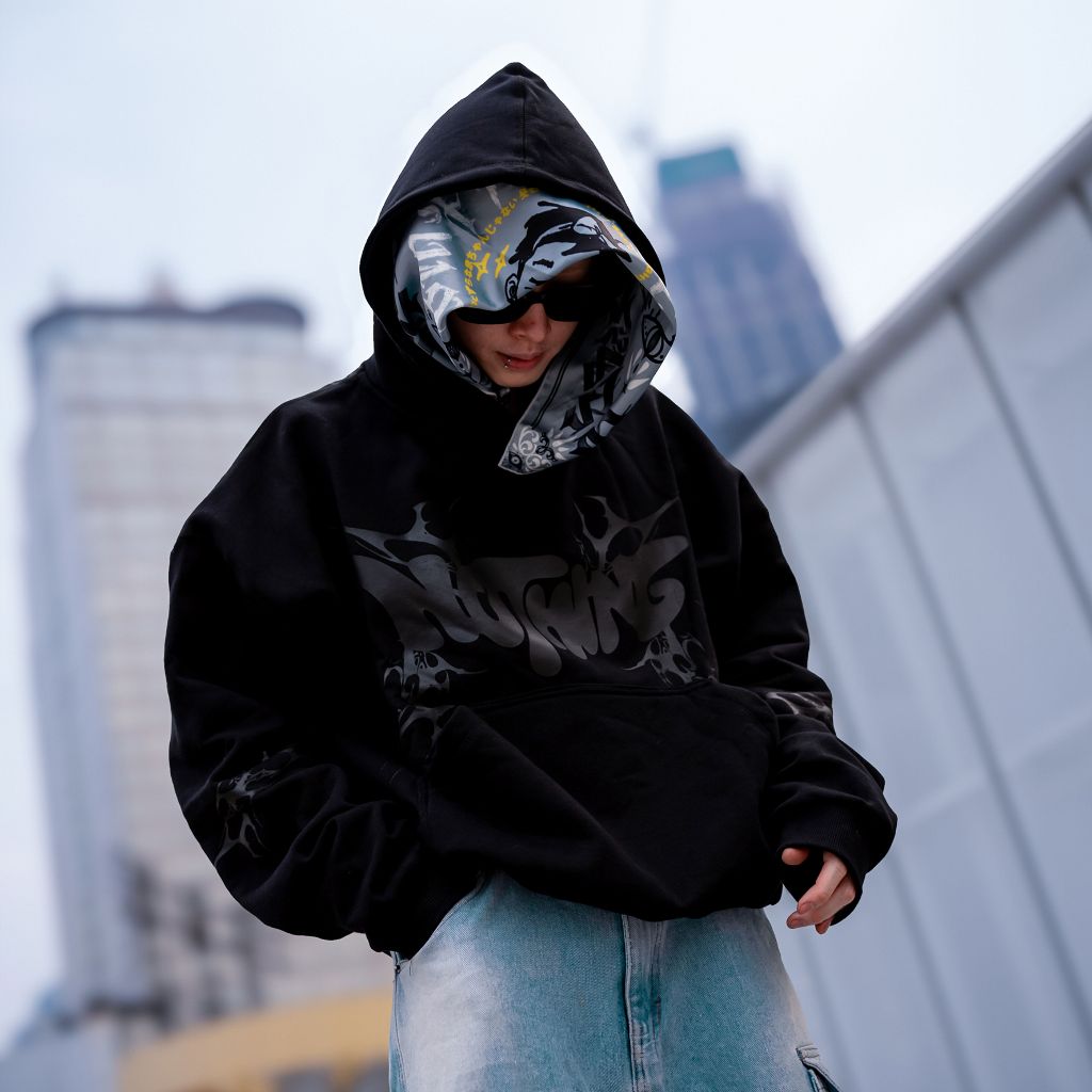 Nothing Human - Deskha Hoodie Boxy Katun Fleece Hitam