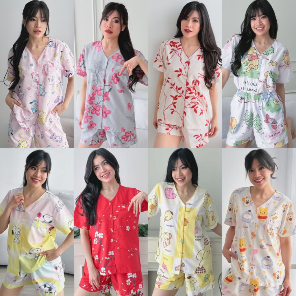 Baju Tidur Wanita Celana Pendek One Set Bahan Katun Halus / Piyama Ld108 Cm
