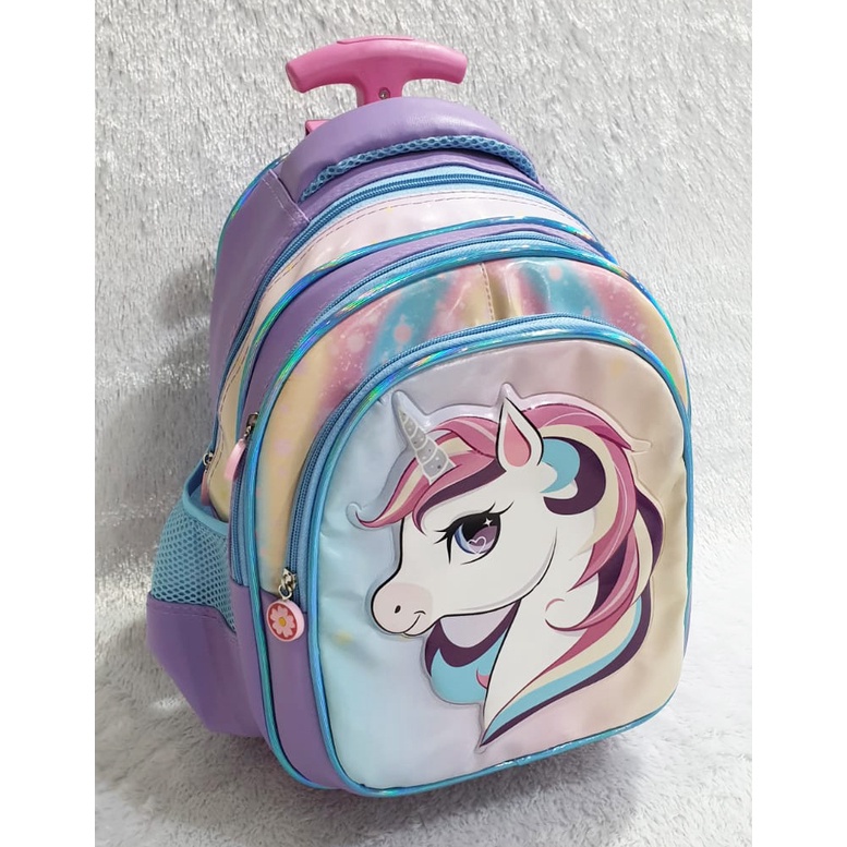 SALE TAS DORONG TROLLEY ANAK PAUD / TK / PLAY GROUP PEREMPUAN GAMBAR KUDA PONY TANDUK SOFT TIMBUL BAHAN TAHAN AIR ( 11 - 12 inch ) Pilihan Varian