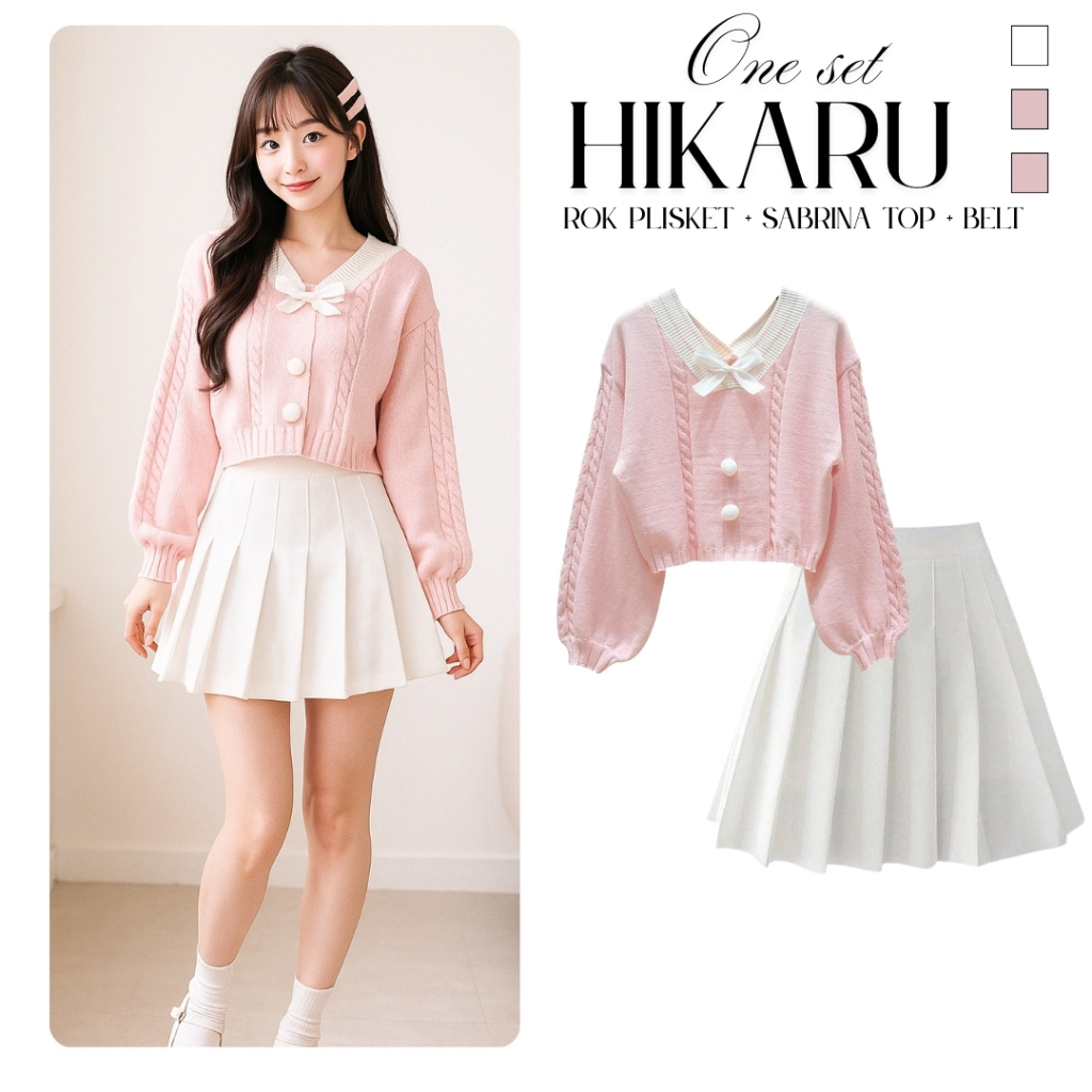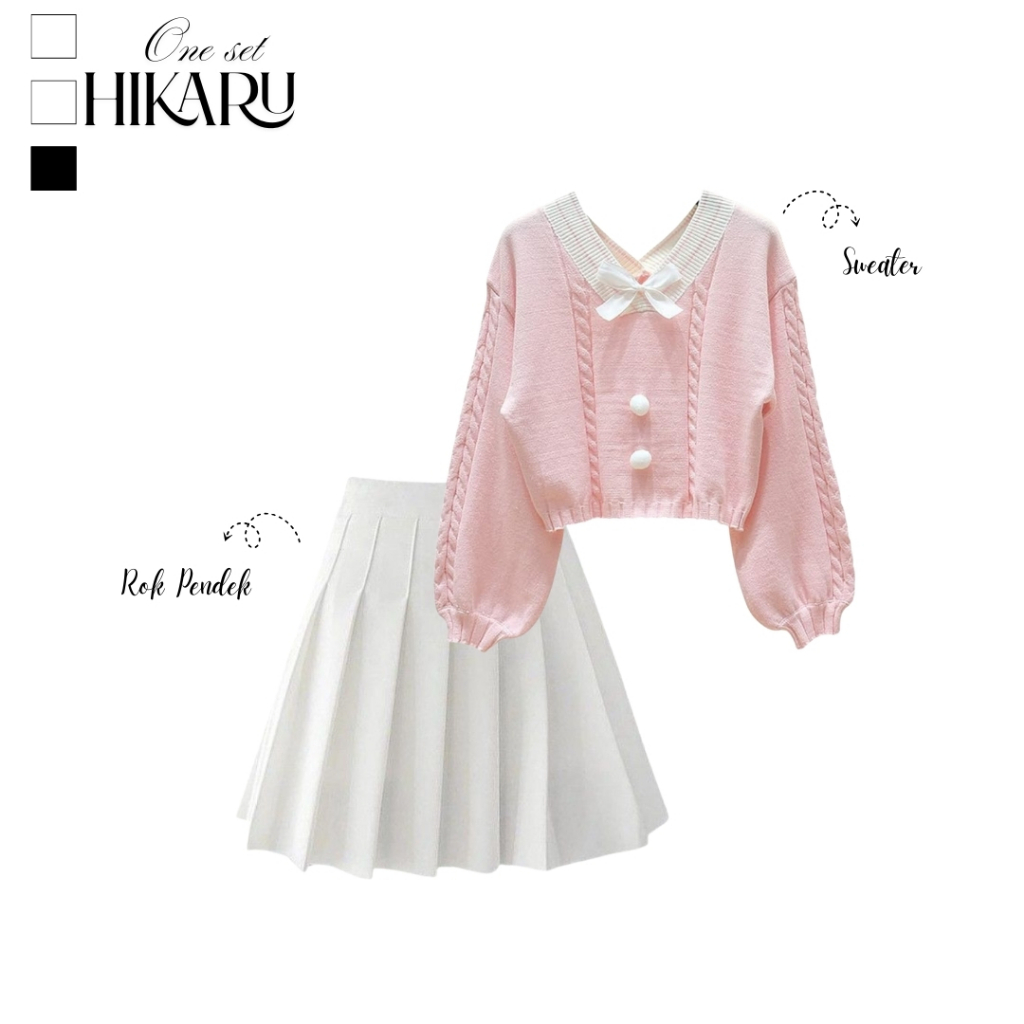 Hikaru One Set Wanita 2In1 Kekinian ( Sweater Kawai+ Rok Pendek ) Setelan Outfit Korean Style Hikaru