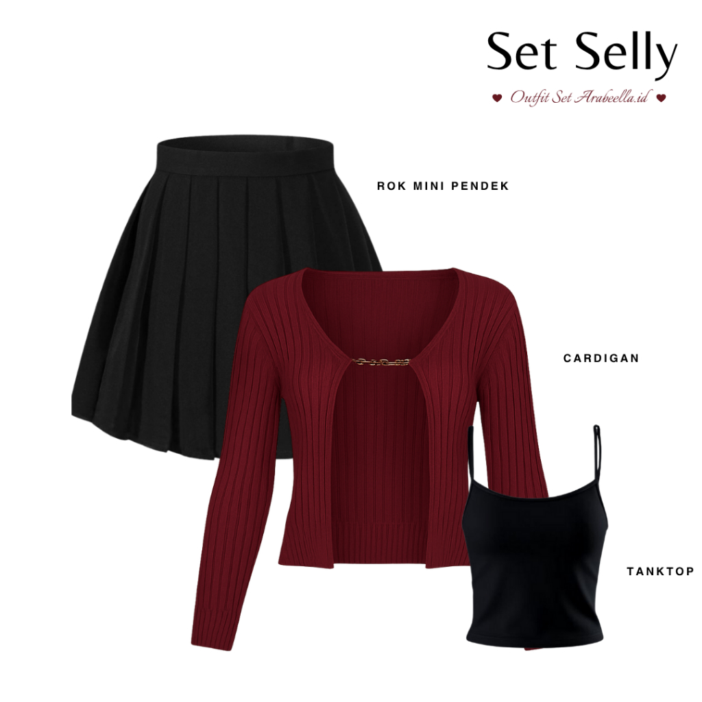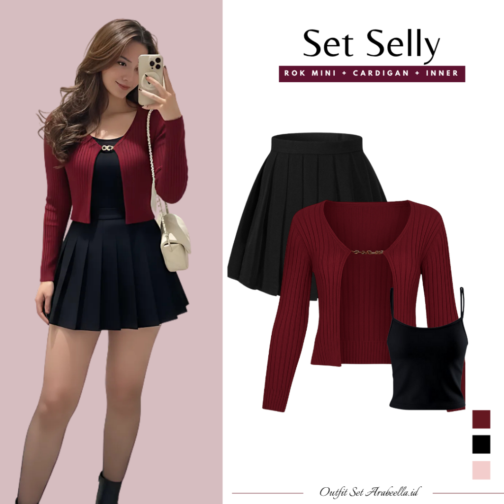 Setelan Wanita Selly ( Rok Mini + Cardigan Diana + Tanktop ) One Set Korean Style | Outfit Hangout