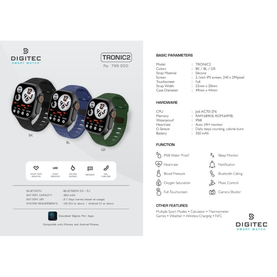 Original 100 PERSEN Jam Tangan Smartwatch Digitec TRONIC2 Jam Pintar Garansi Resmi 1 Tahun