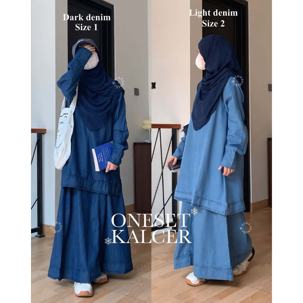Oneset Kalcer By Arunaoutfit || Oneset Denim + Kemeja
