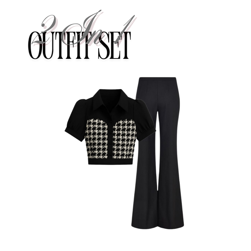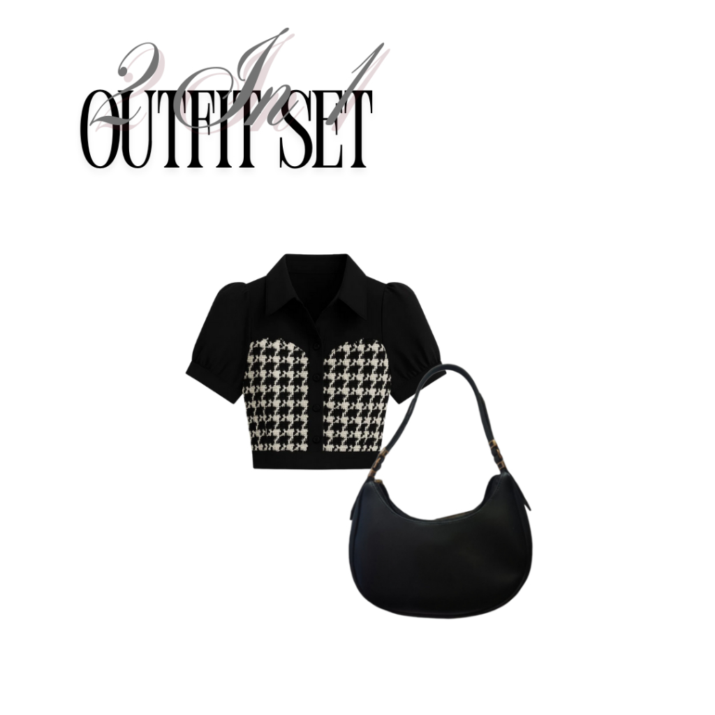 One Set (3 In 1) Setelan Wanita Remaja (Suzan Blouse, Cutbray, Bag) Korean Style Chic Set - Perfect For Trendy Teens - F