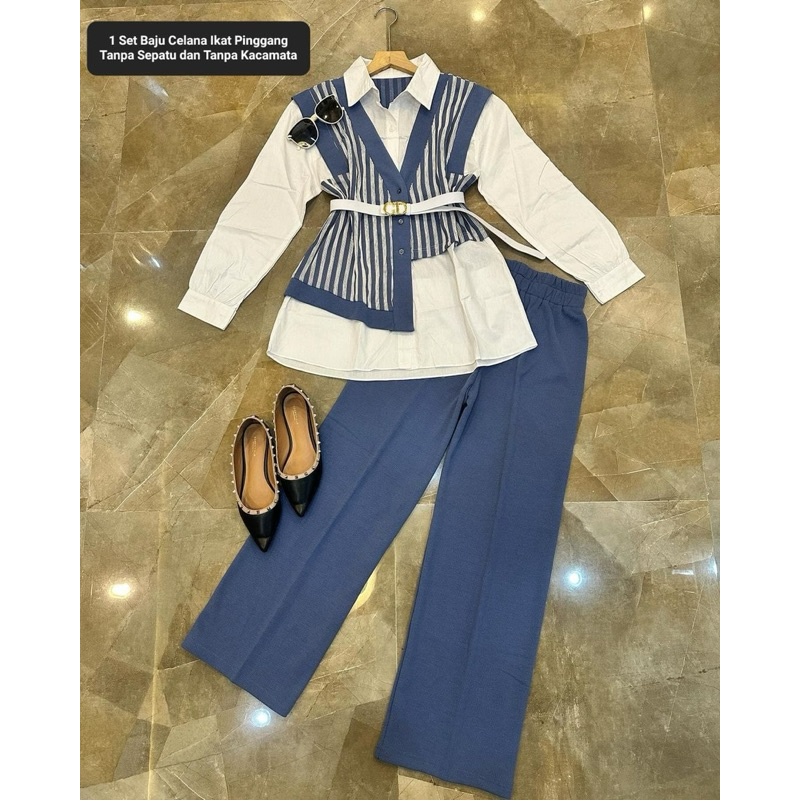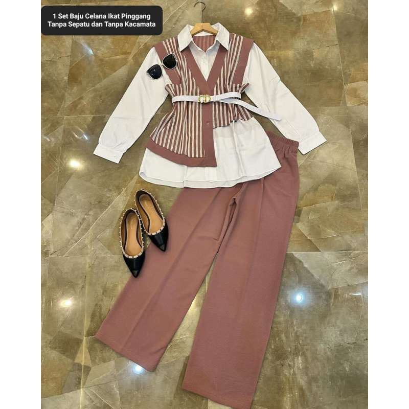 Zora Setelan Celana Katun Knit Rajut Viral Dena Set Formal