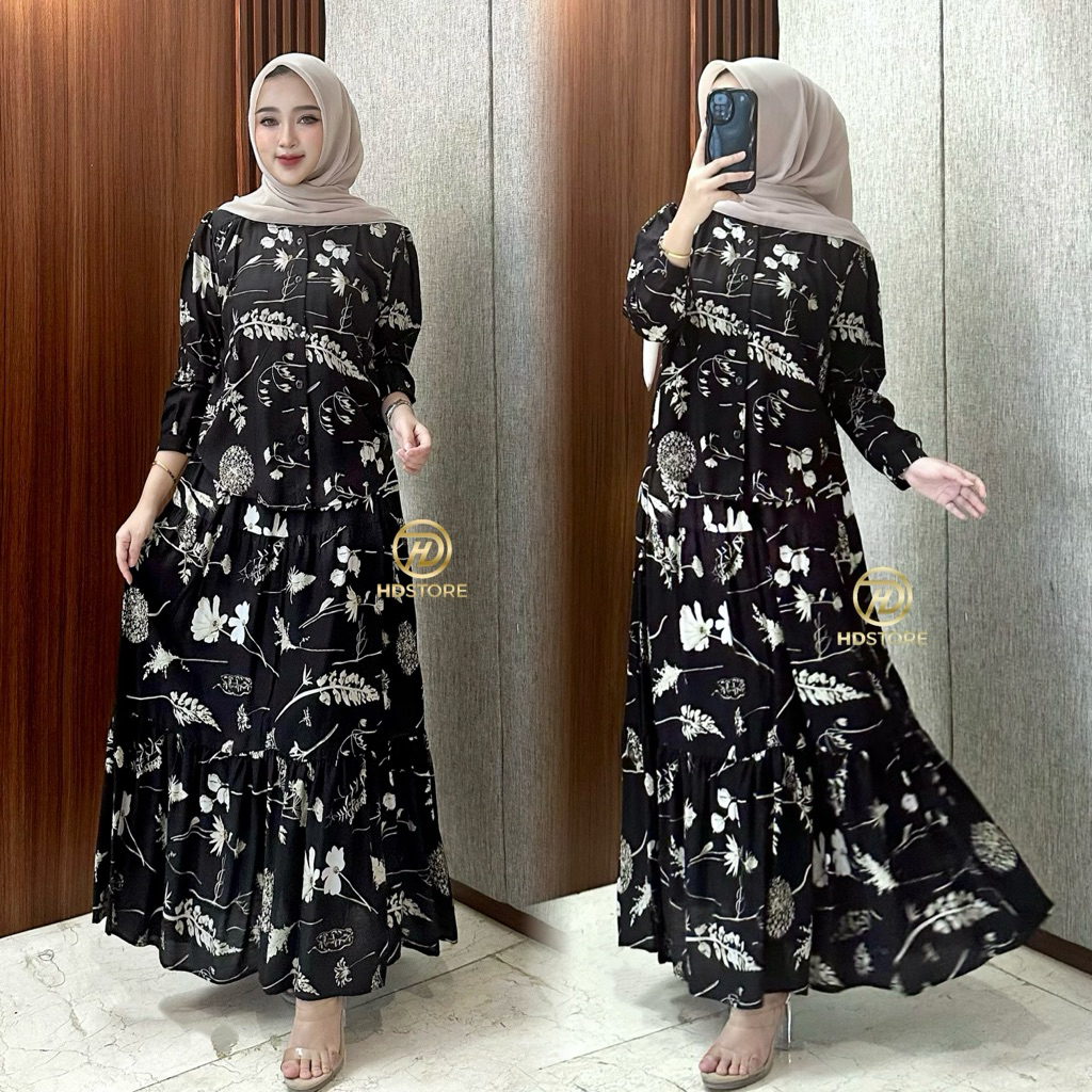 Oneset Rok Rayon - Claudia Set Rok 2In1 Bahan Rayon Motif Setelan Wanita Jumbo Set Rayon Rok Dan Blouse Kancing Busui Fr