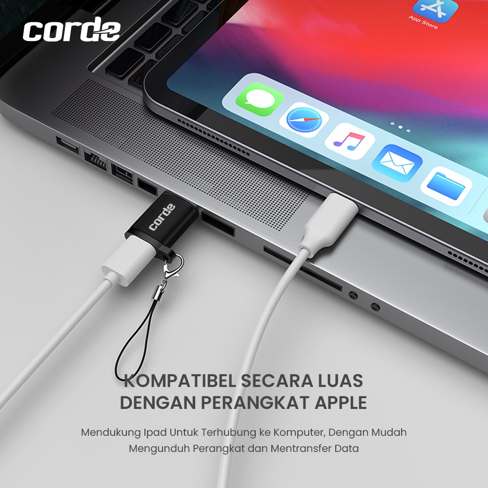 CORDE OTG Type C to USB A Adapter Converter Zinc Alloy Hitam
