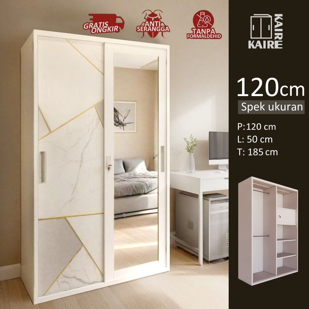 KAIRE Lemari Pakaian Besi 2 Pintu Sliding Jumbo | 120cm 2 Batang Rak Baju
