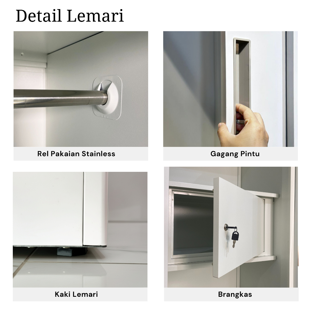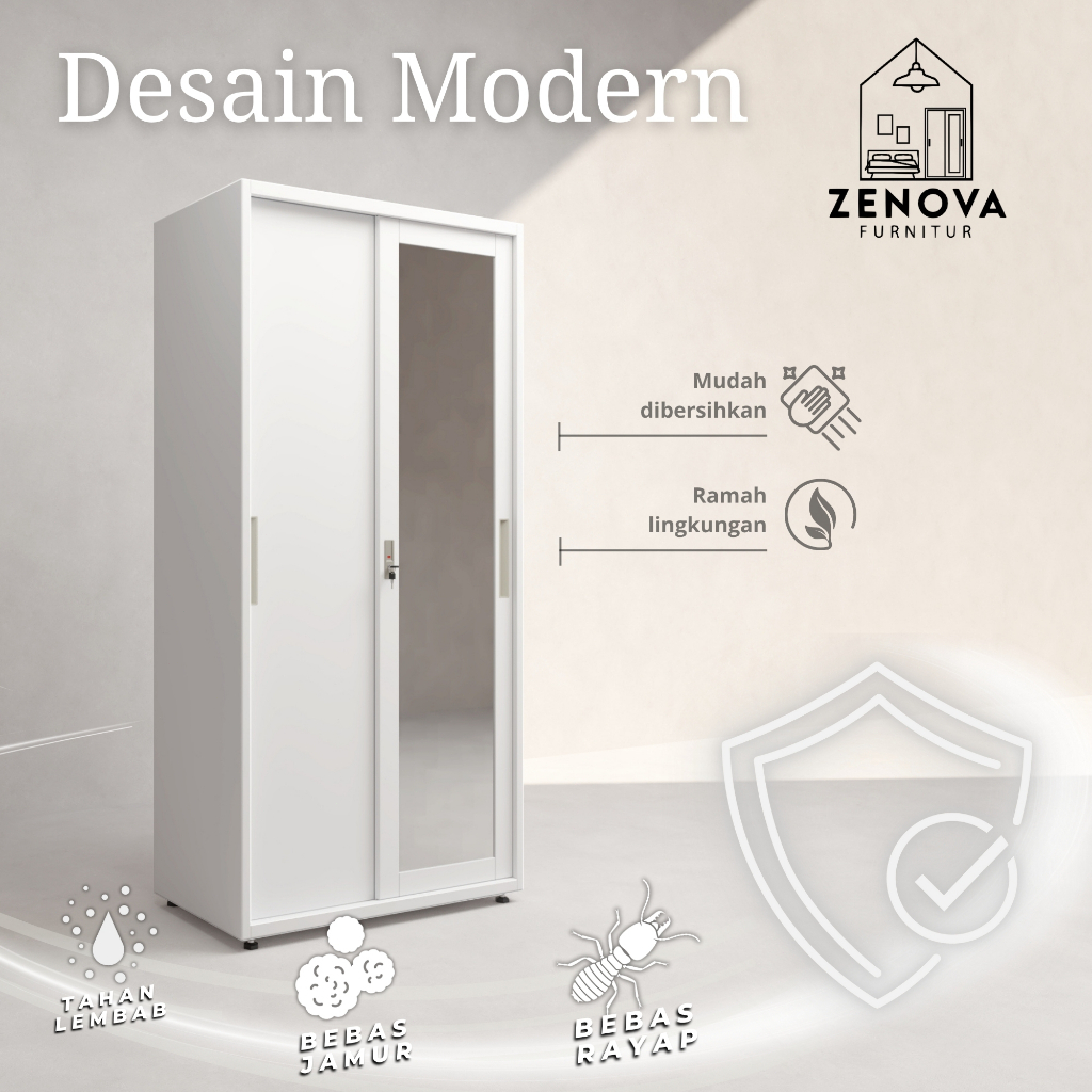 ZENOVA Official Lemari Pakaian Besi Lemari Pakaian 90cm 2 pintu slidding 1 Hanger Cermin Minimalis