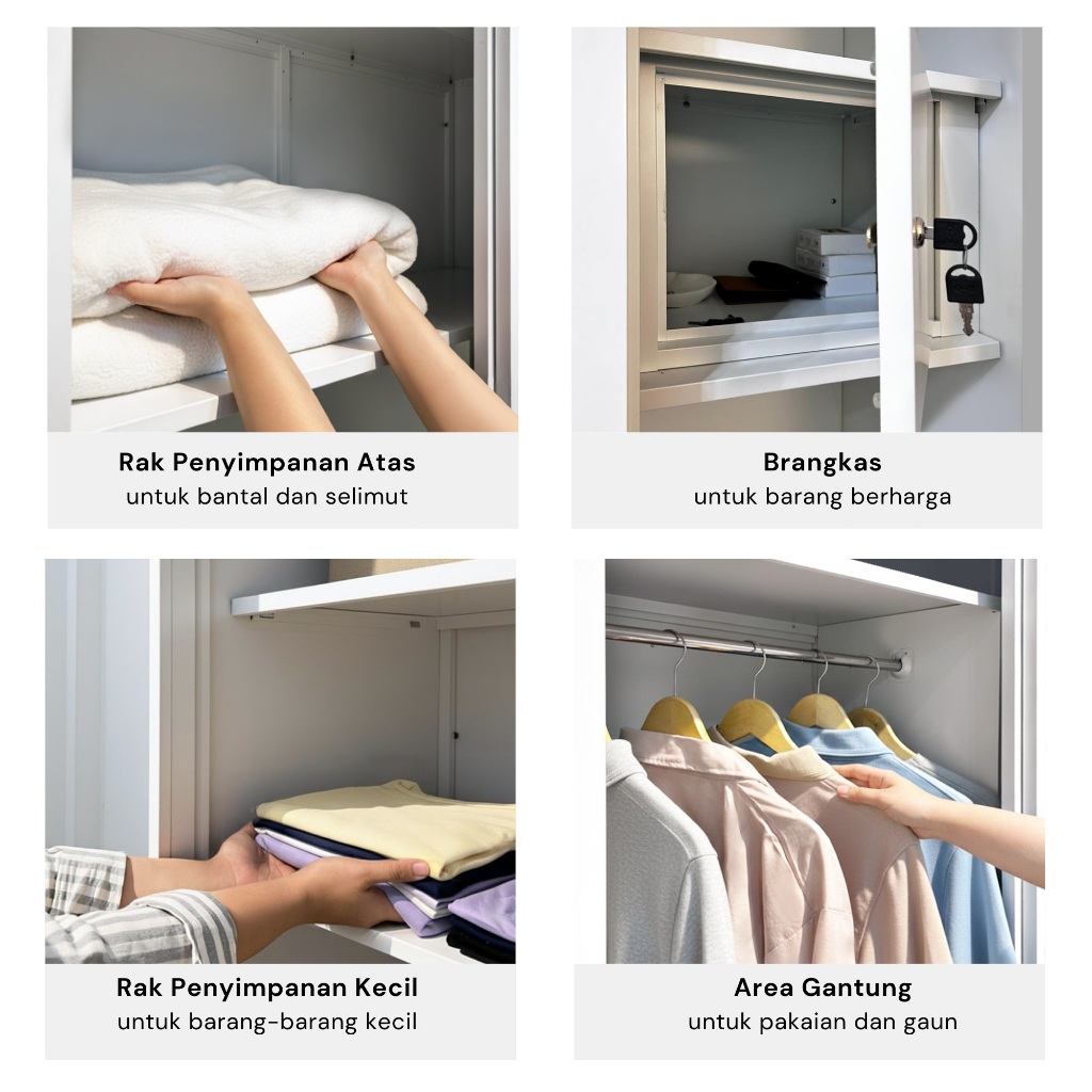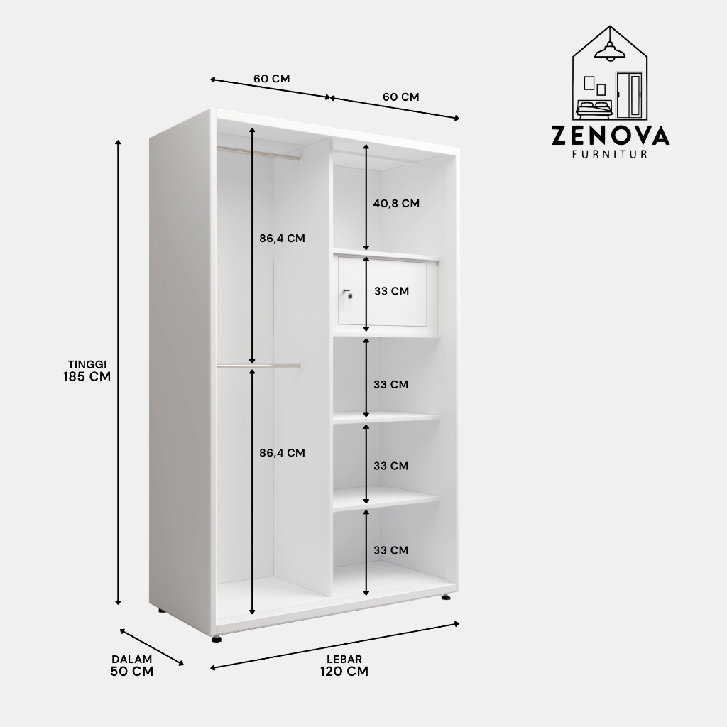 ZENOVA Official Lemari Pakaian Besi Lemari Pakaian 120cm 2 pintu slidding 2 Hanger Cermin Minimalis