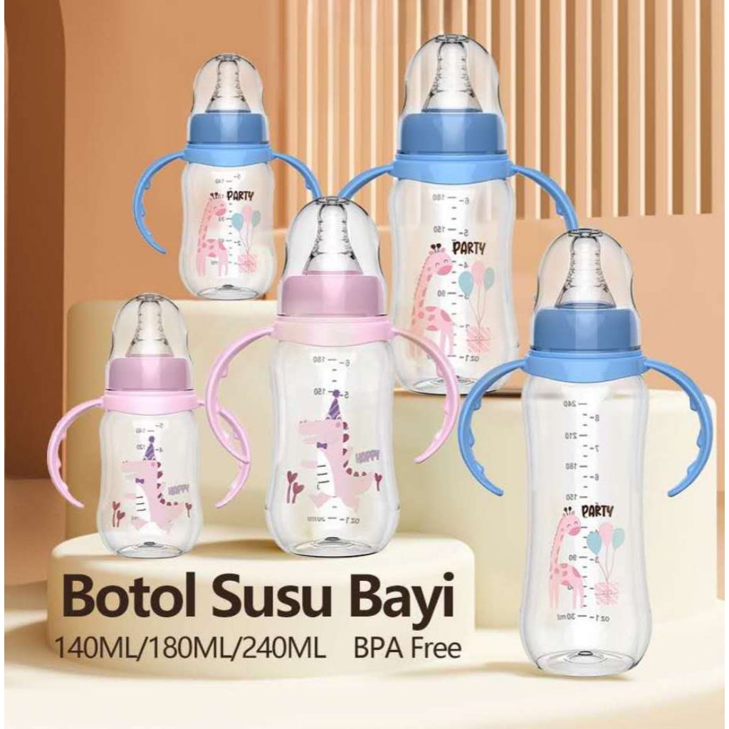 Botol Susu Bayi BPA Free Dot Silikon Anti Kolik dengan Pegangan