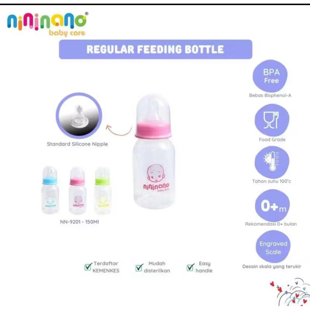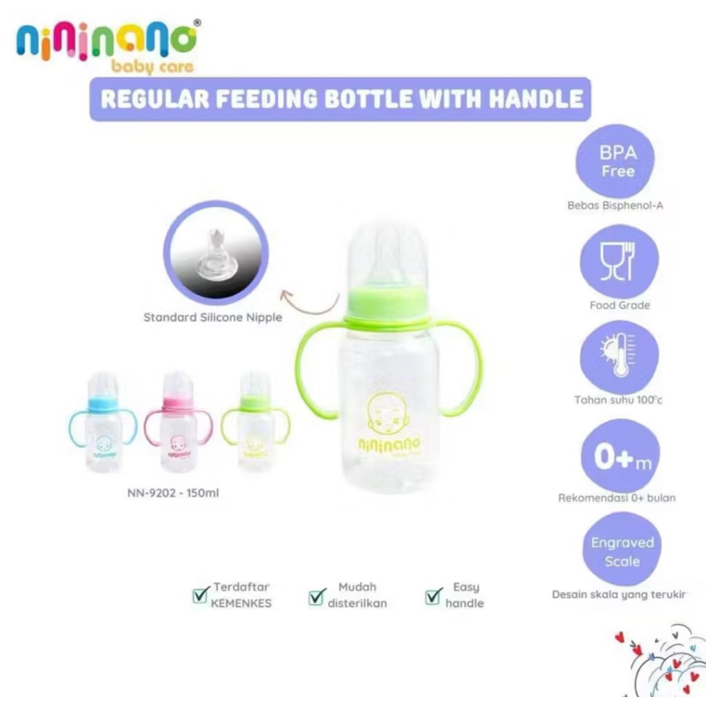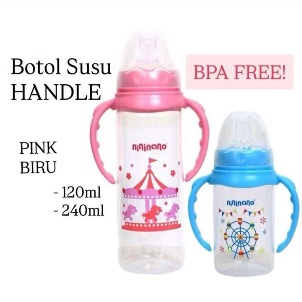 NININANO Botol Dot Susu Bayi 120/240 ml | Handle Feeding Baby Bottle Reguler Nipple Bulat Standard Neck BPA Free