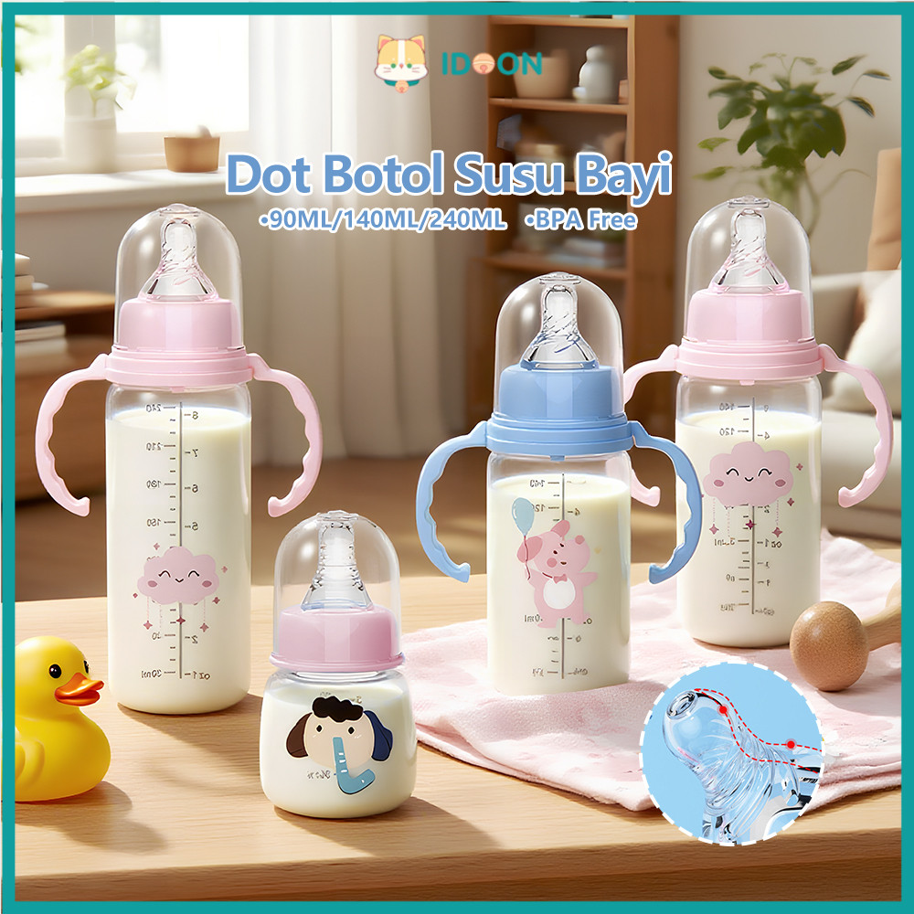 IDOON Botol Dot Susu Bayi Dengan Pegangan Botol Minum PP Newborn 90ML/140ML/240ML