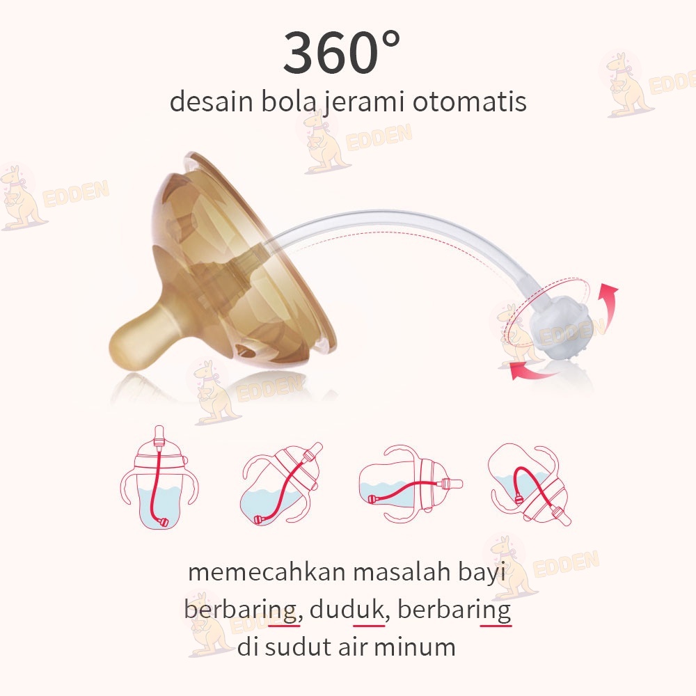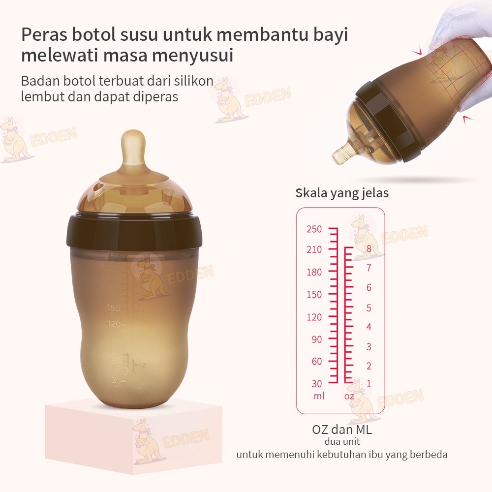 Edden botol susu wide neck anti kolik botol bayi dengan sedotan bahan silikon