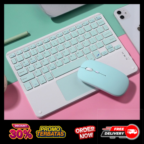 Keyboard Komputer Gaming Mechanical Silent Backlit Goojodoq 10 inch Wireless Combo Mouse RGB Murah PC Laptop For iPad