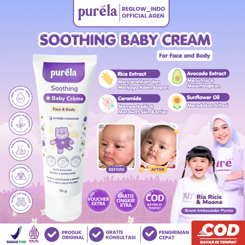 PURELA Skincare Soothing Baby Cream Perawatan Wajah dan Badan Pencerah Kulit Bayi dan Anak