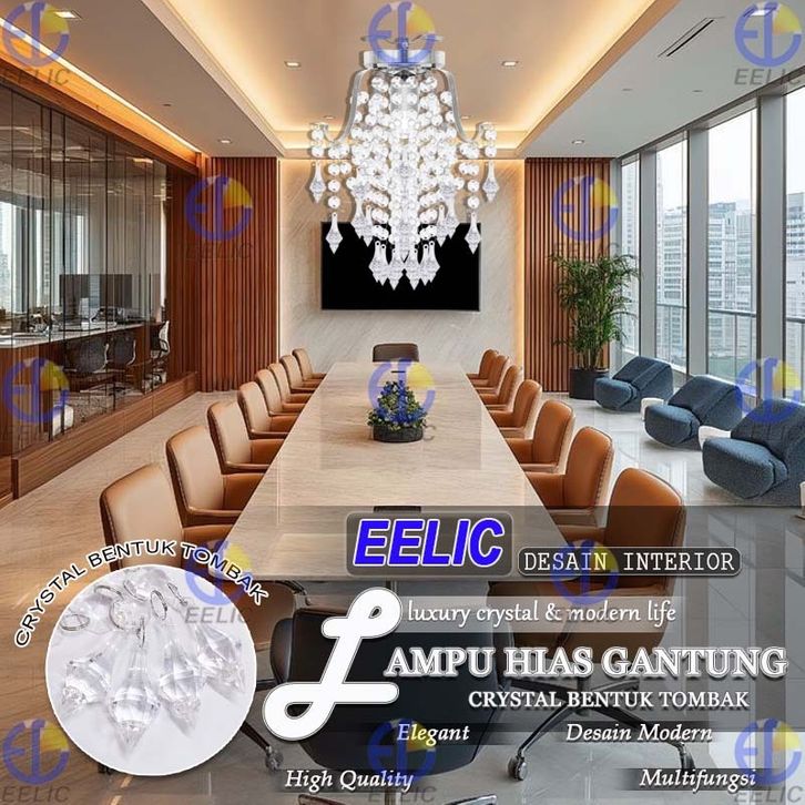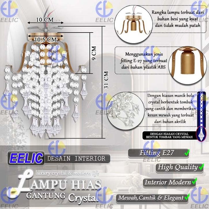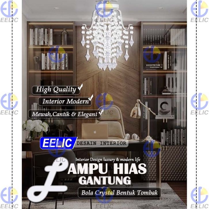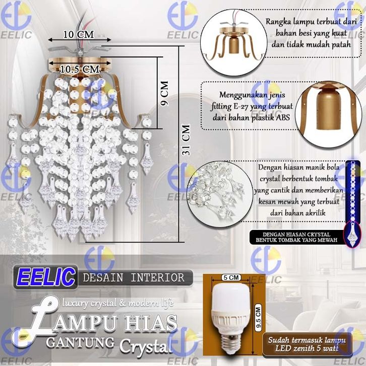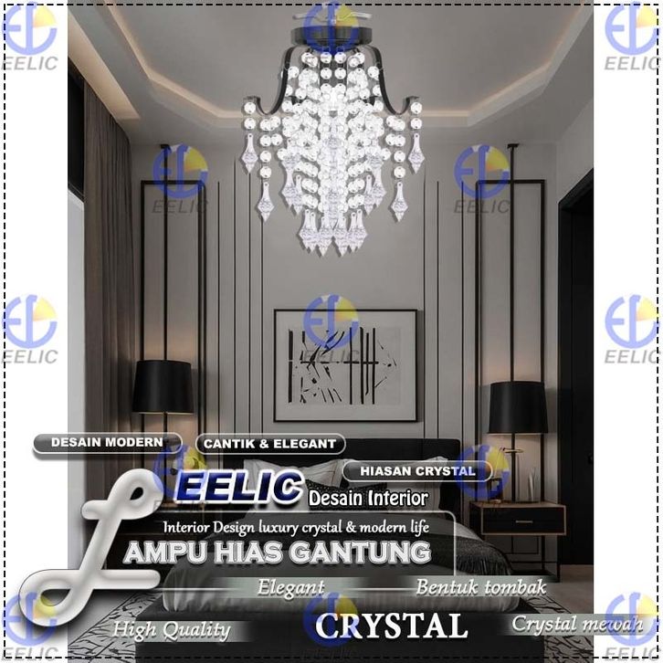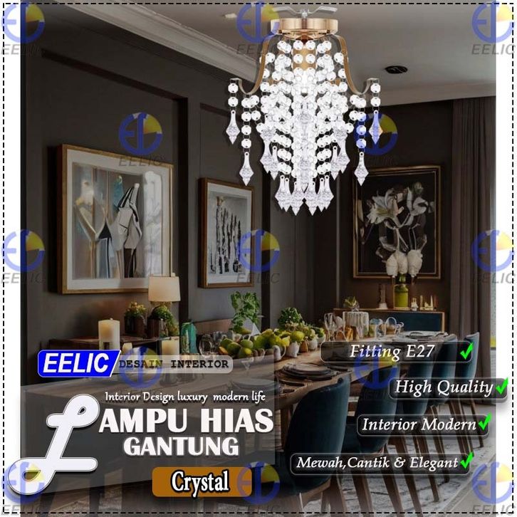 EELIC LHG-329 Lampu Hias Gantung Crystal 4 Cabang Fitting E-27 Hiasan Manik Crystal Memberi Kesan Elegant Dan Mewah Des