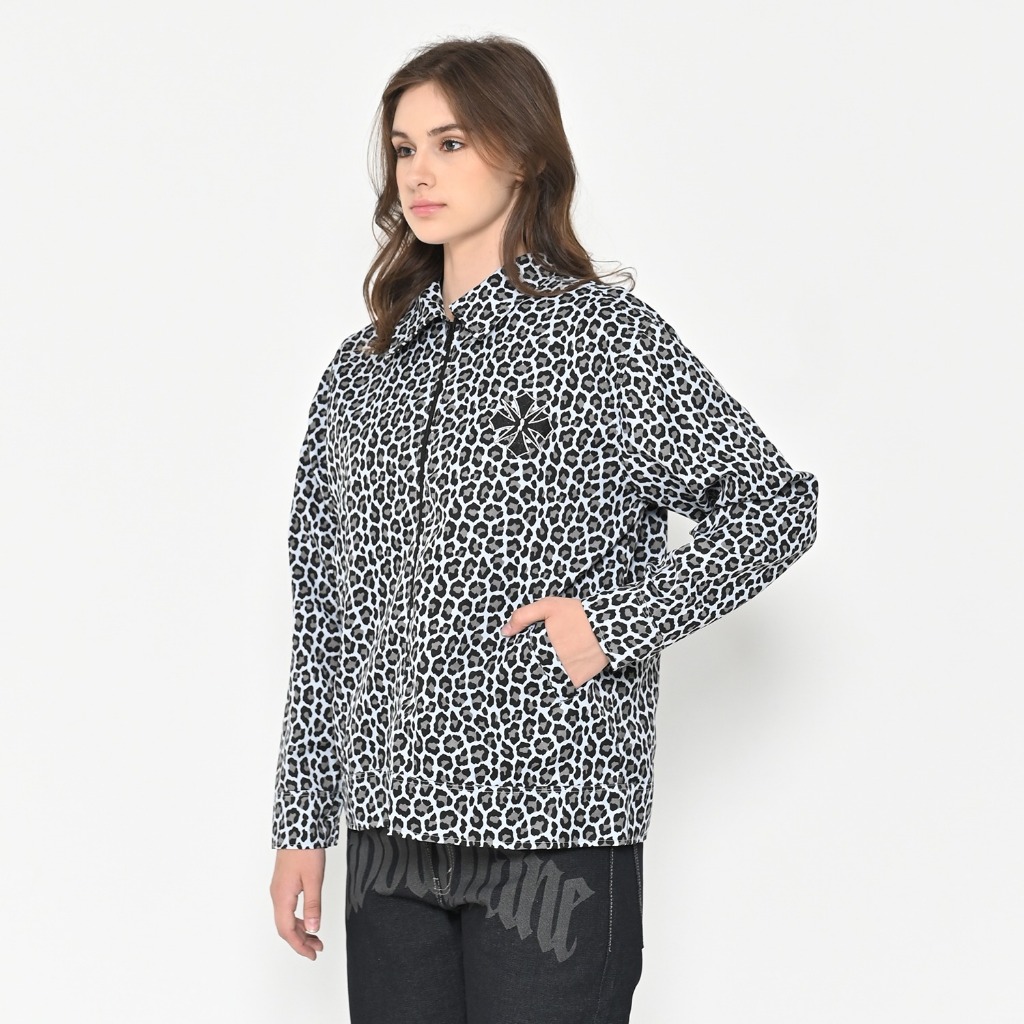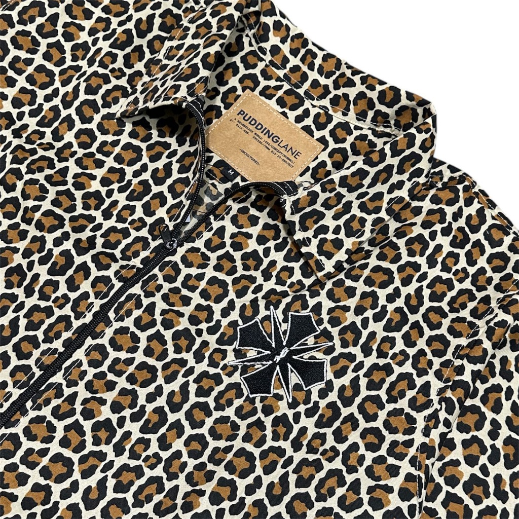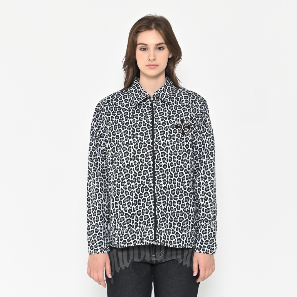 Puddinglane Work Jacket Boxy Leopard Unisex Pria Wanita Lengan Panjang Haileyrose