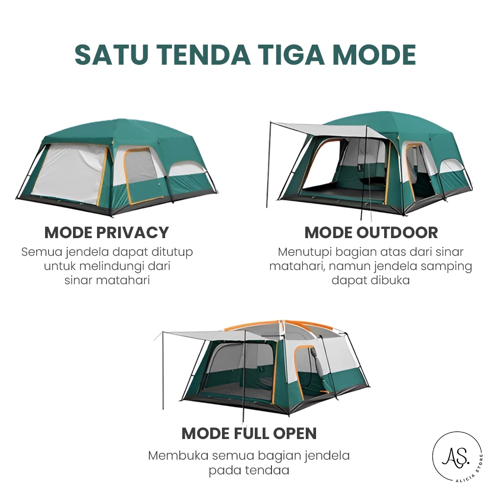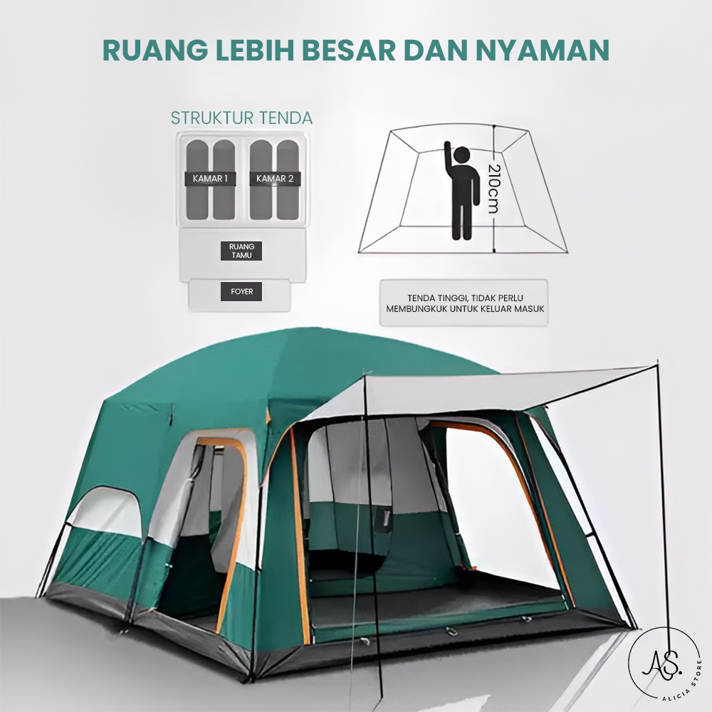 AS Tenda Camping Outdoor Waterproof Ada Kamar Tidur & Ruang Tamu