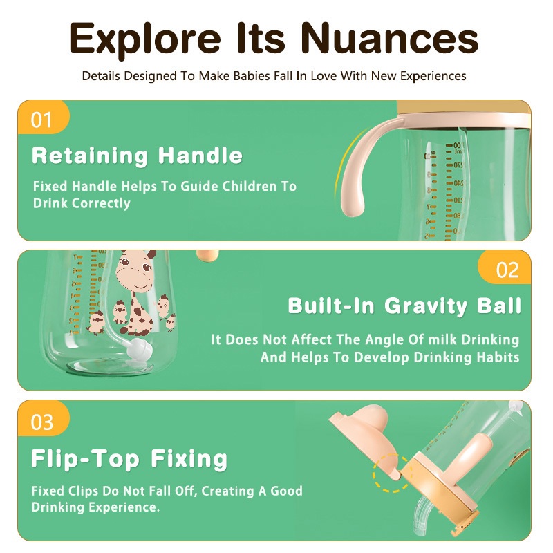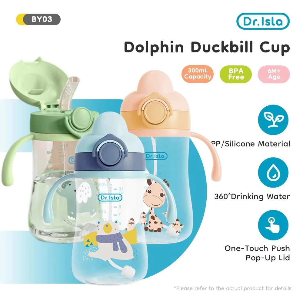 Dr.isla BY03 Portable Baby Bottle 300ml/250ml Leakproof Baby Feeding Set BPA Free for 6 Months Botol Minum Bayi Anti Col