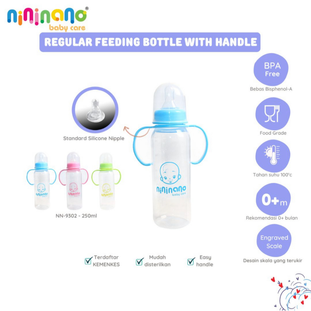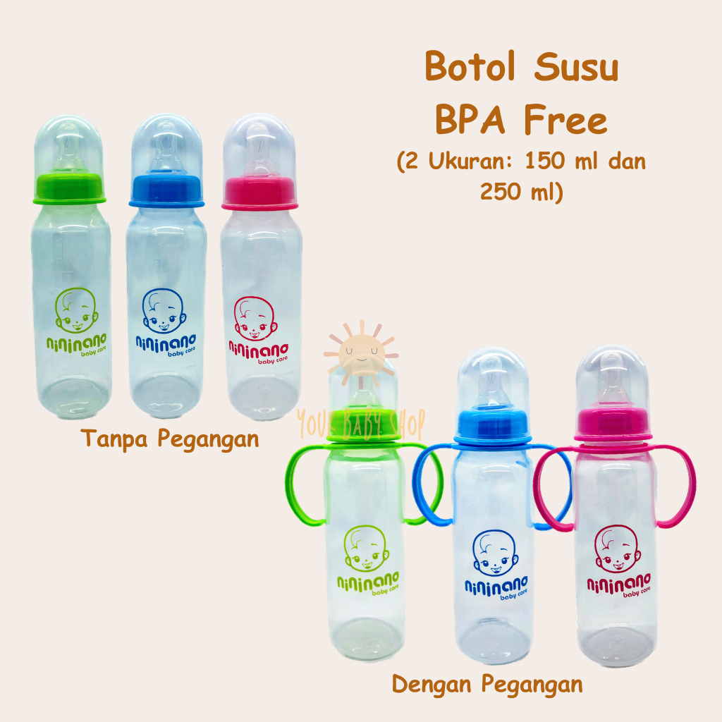 Botol Dot Susu Bayi NiniNano Handle Feeding Baby Bottle Reguler Nipple Bulat Slim Neck BPA Free
