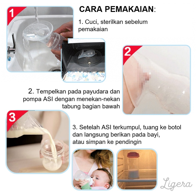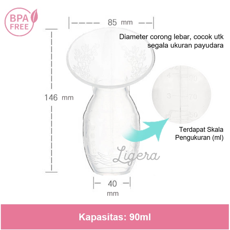 LIGERA Pompa ASI Manual / Silicone Breast Pump / Wadah Penampung Milk Saver Portable BPA FREE