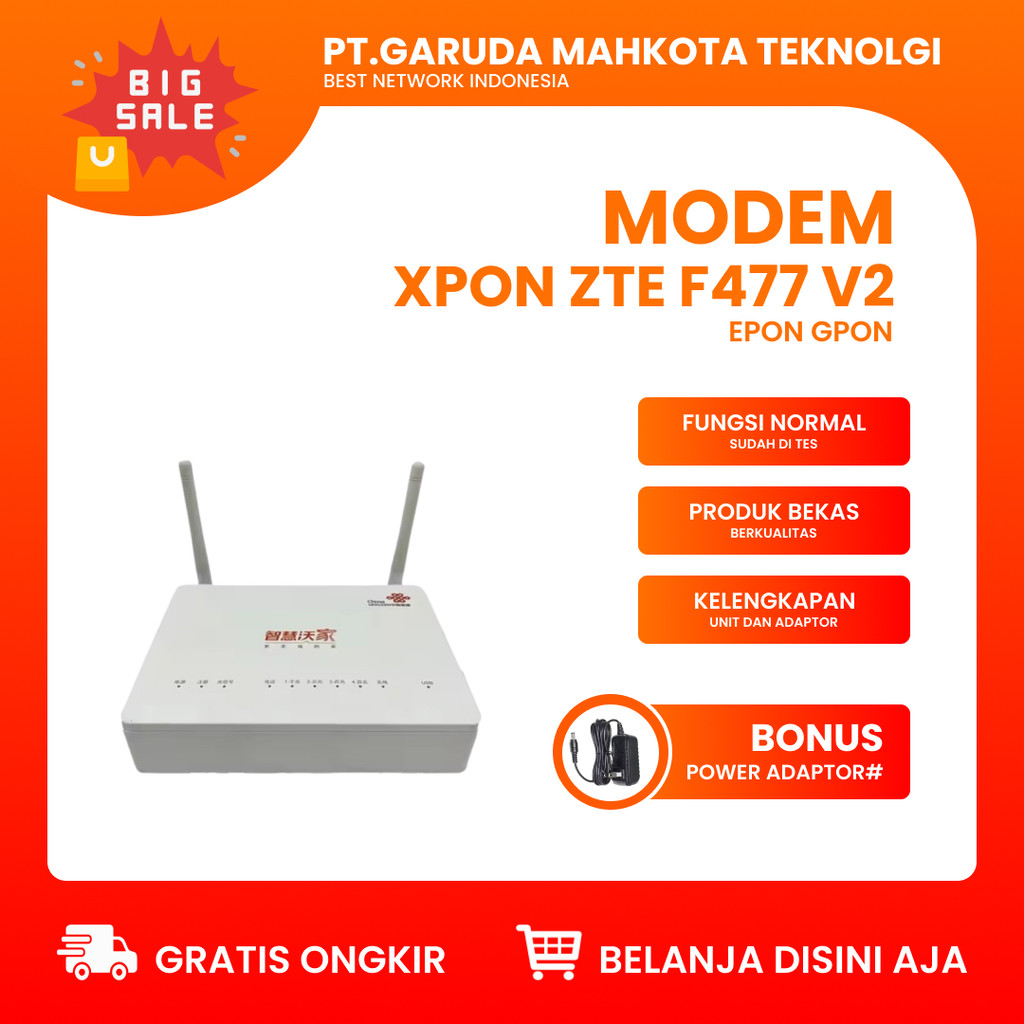 MODEM ONT ZTE F477 V2 EPON WIFI KONDISI BERSIH-EPON ZTE ONU F477-GRATIS ADAPTOR-TERMURAH