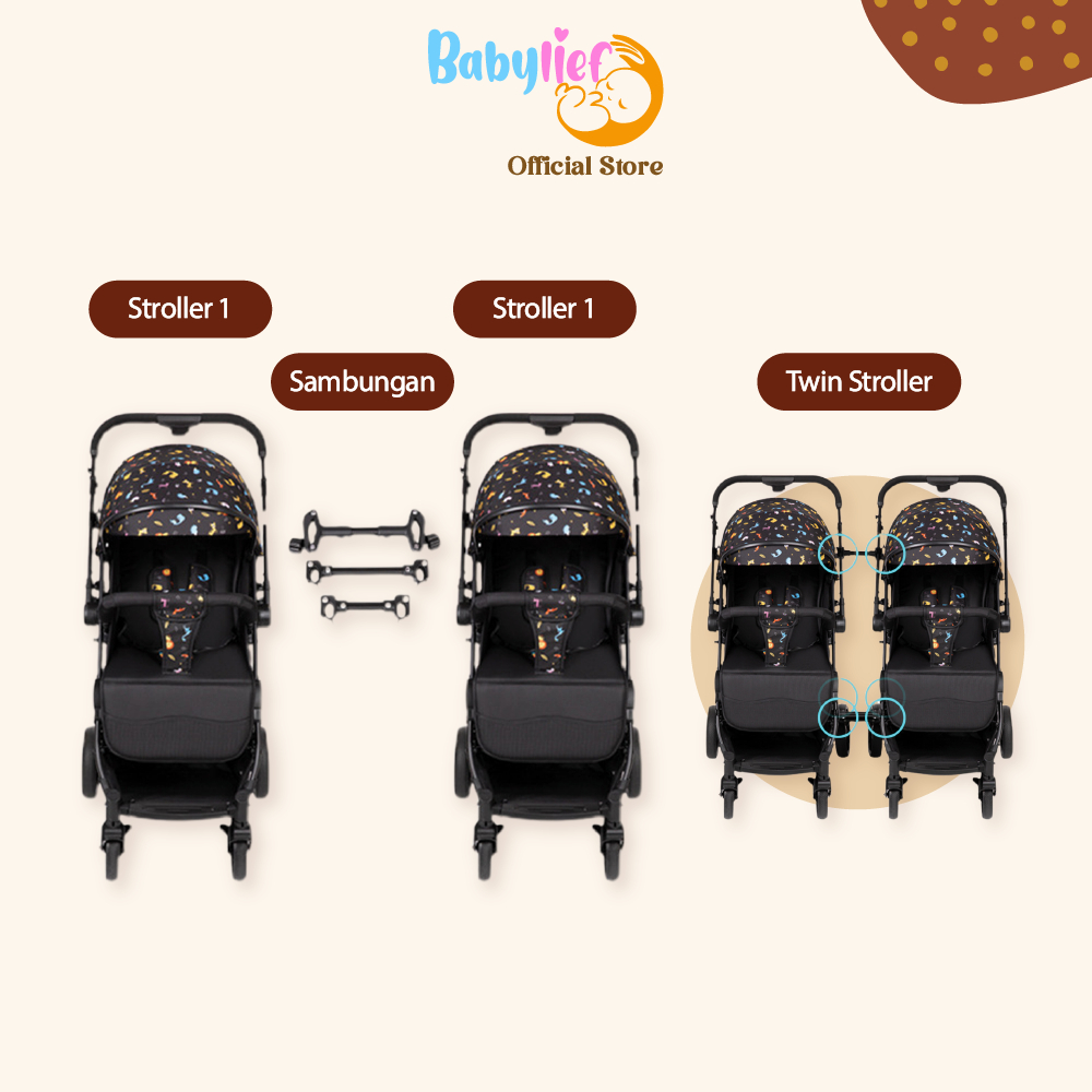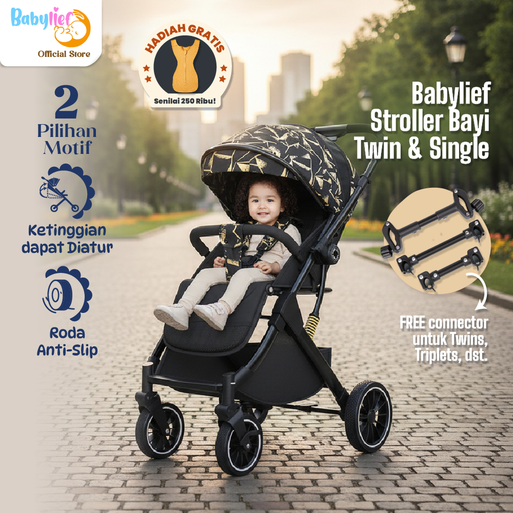 Babylief Stroller Dorong Bayi Kembar – Bisa Twin atau Single, Roda Stabil & Mudah Disimpan BL070