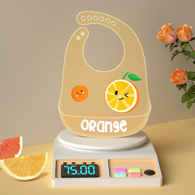 Celemek Makan Bayi Baby BIB Slabber Full Silikon Motif BUAH- BUAHAN TRANSPARANT. Kantung Nasi Bahan Silicone RK5