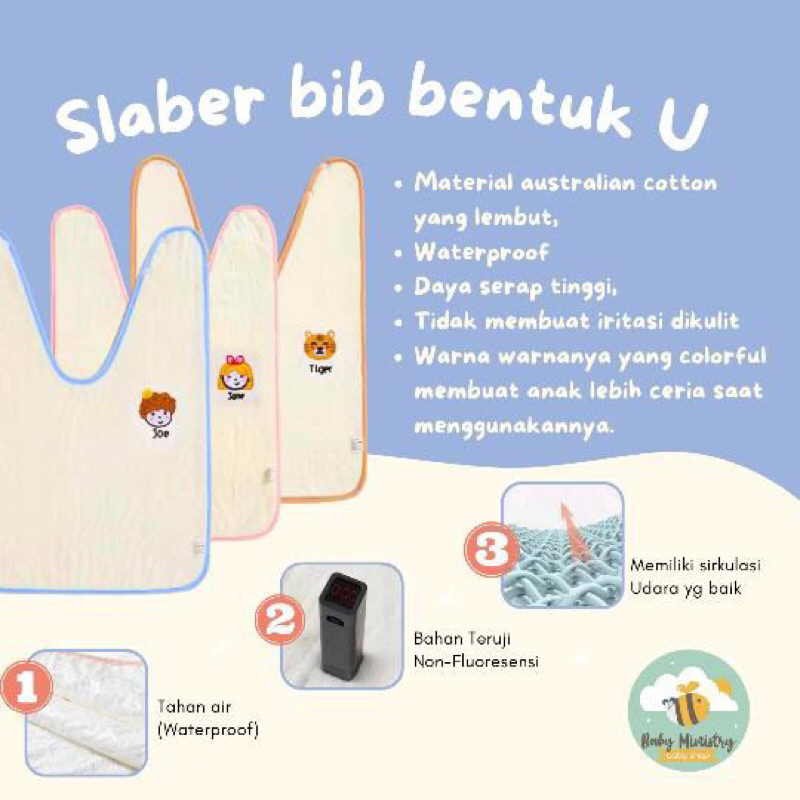 SLABER BENTUK U Bib Makan Bayi / SLABER ANAK LUCU / BIB ANAK LUCU/ WATERPROOF / sleber anti air / celemek anak / celemek
