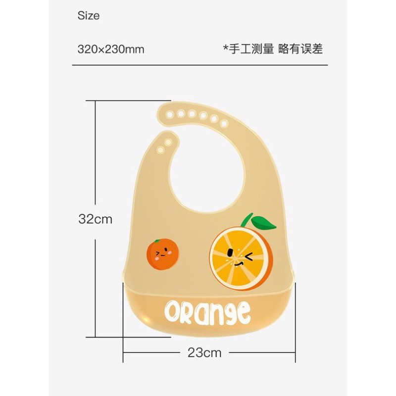 YH Celemek Makan Bayi Baby BIB Slabber Full Silikon Motif BUAH- BUAHAN TRANSPARANT. Kantung Nasi Bahan Silicone MURAH CO