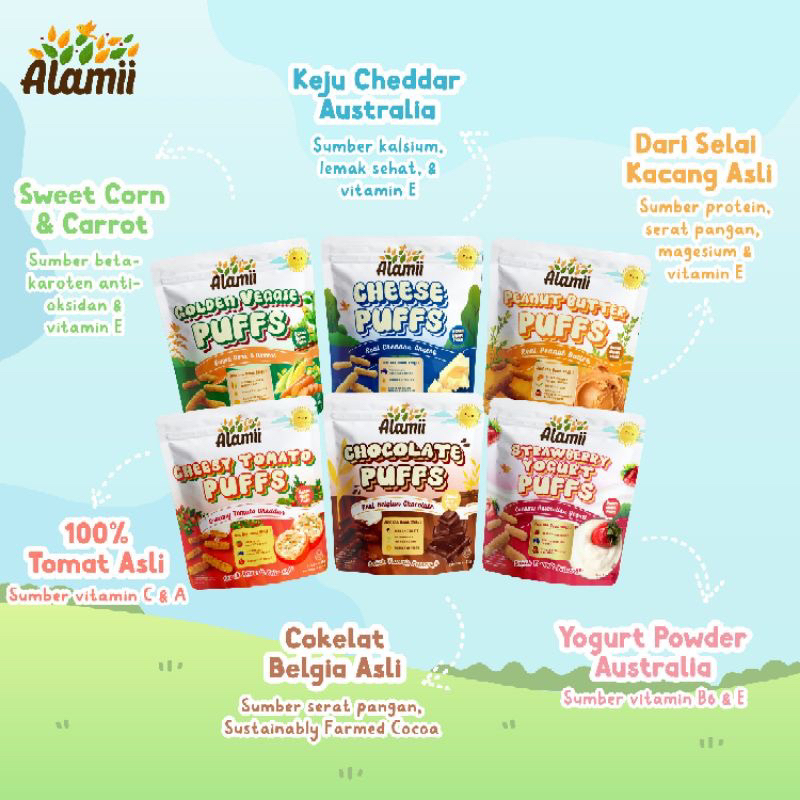 Alamii Puffs Alamii Puff Cemilan / Snack Bayi & Anak & Dewasa Alami puff Sehat Non MSG - Cemilan Anak - Keripik Kerupuk