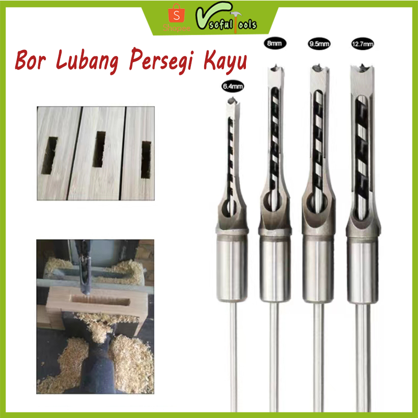 Usefultools Mata Bor Kayu Bobok Mortising Chisel Drill bit 1/4 5/16 3/8 1/2 Lubang Kunci Kusen Mortising Kit Mortise Te