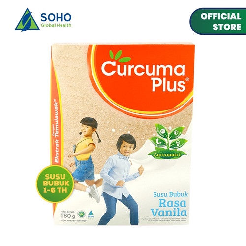 CURCUMA PLUS SUSU BUBUK EKSTRAK TEMULAWAK VANILA COKELAT & MADU 180 G SUSU PERTUMBUHAN ANAK 1-6 THN