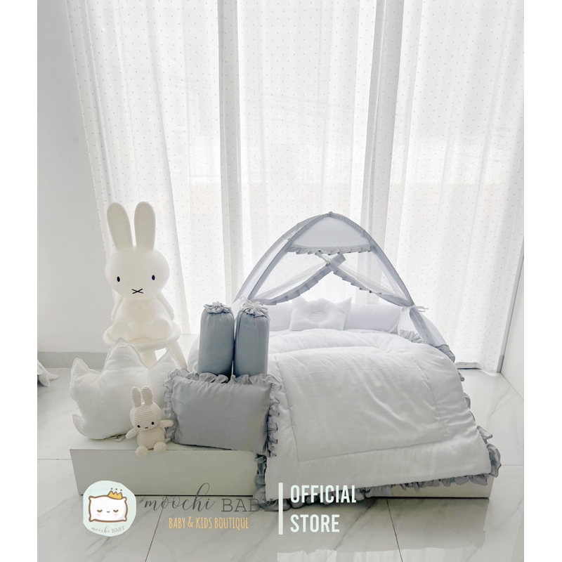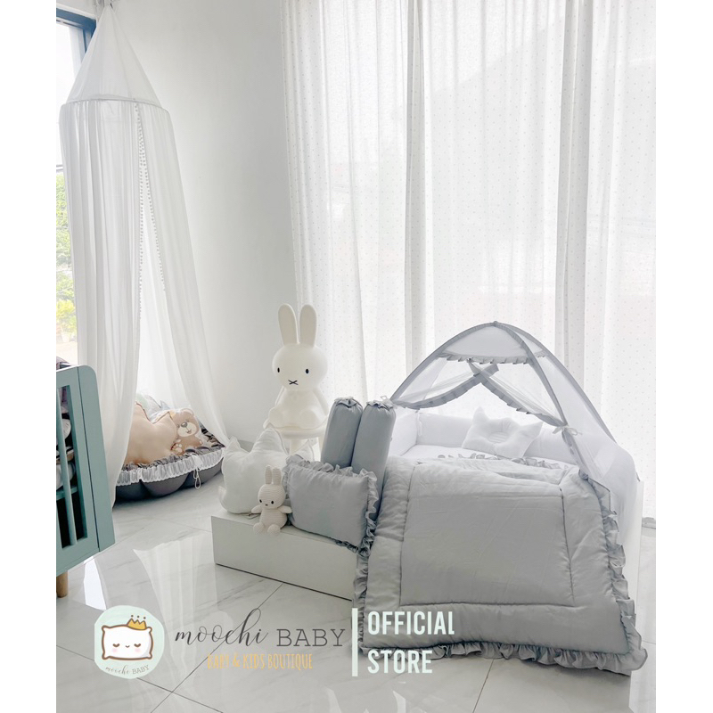 moochi Baby kasur kotak set kelambu polos tempat tidur bayi newborn selimut blanket newborn