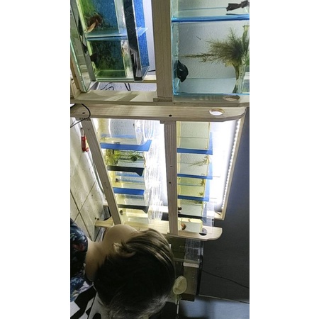 rak cupang/Guppy + LED strip minimalis, rak buku, rak multifungsi,rak soliter 2 liter,rak soliter 4 liter