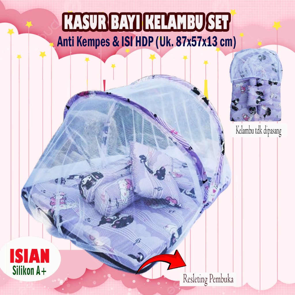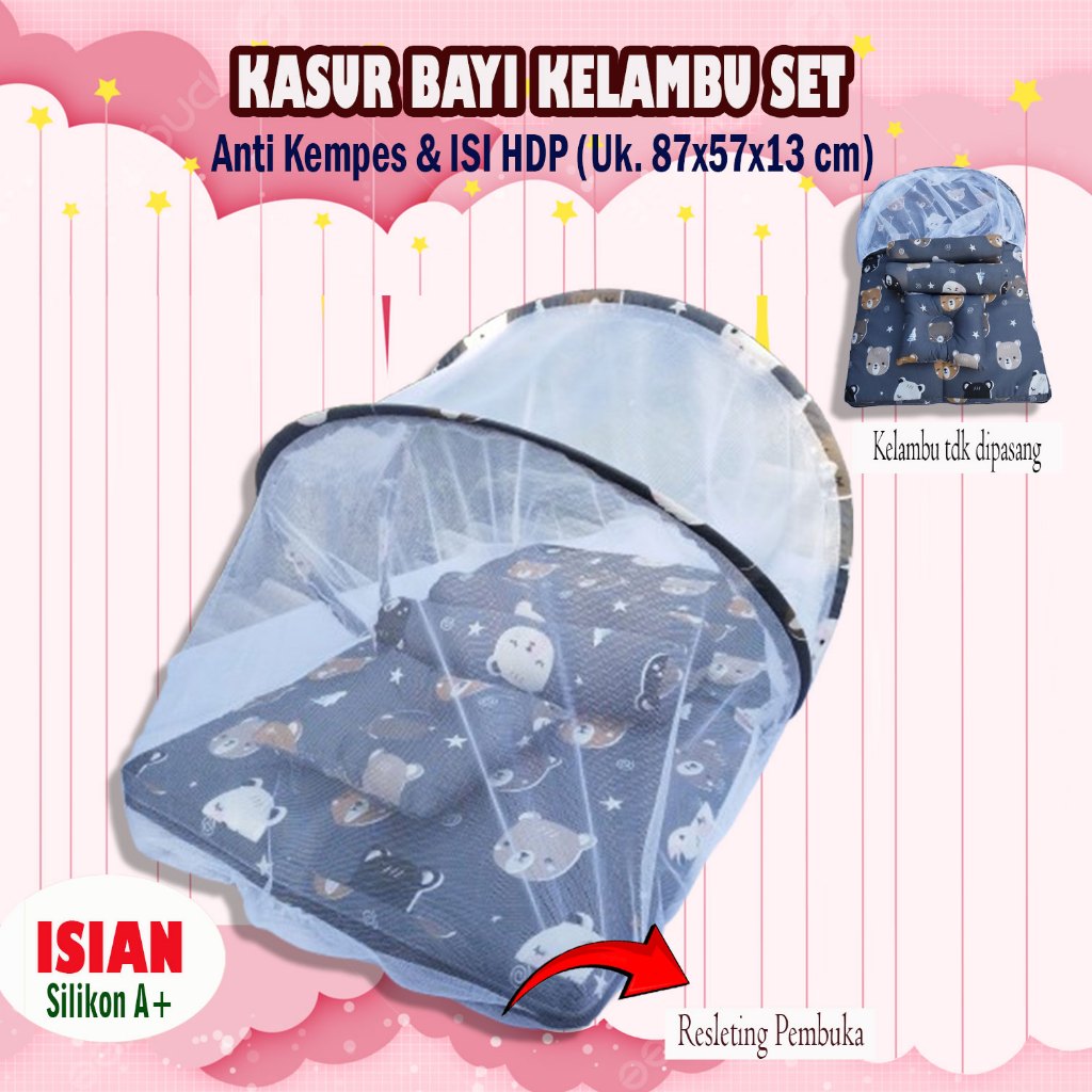 KASUR KELAMBU BAYI SET LEBIH PREMIUM LEBIH TEBAL ANTI KEMPES ISI HDP BANTAL GULING PREMIUM FULL SILIKON GRADE PREMIUM