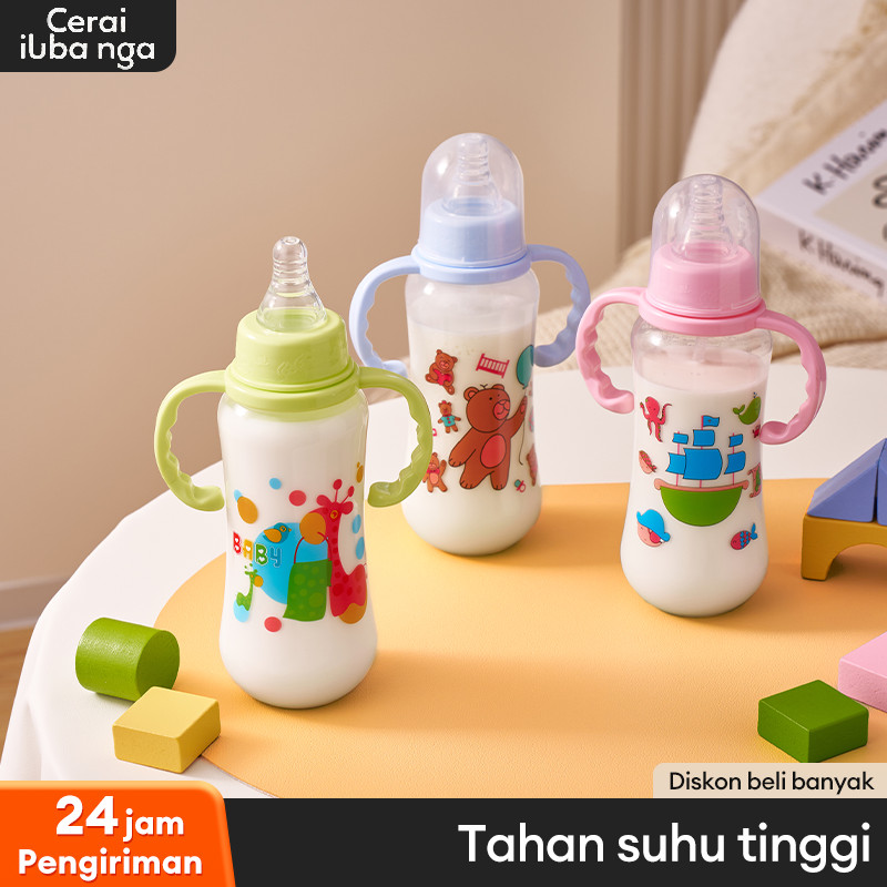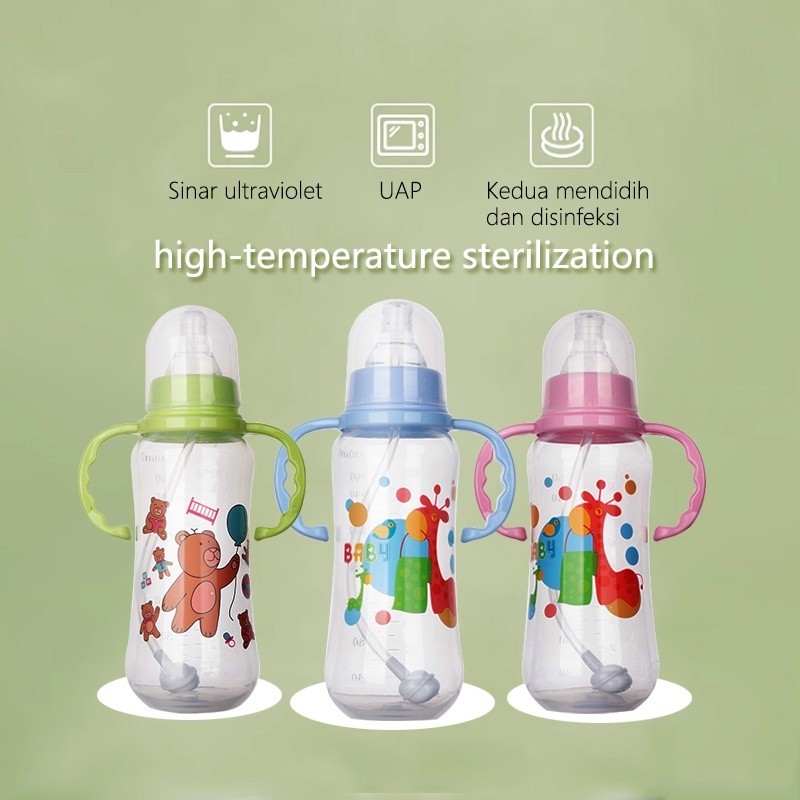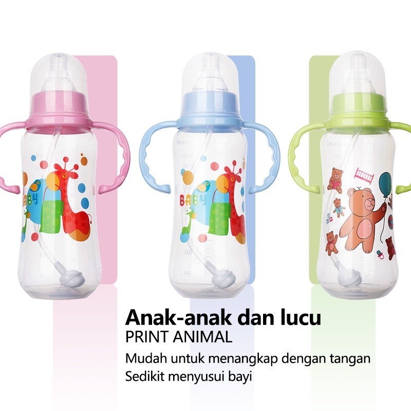 Botol bayi 280ml dengan pegangan dot leher tipis botol dot bebas BPA XM-001