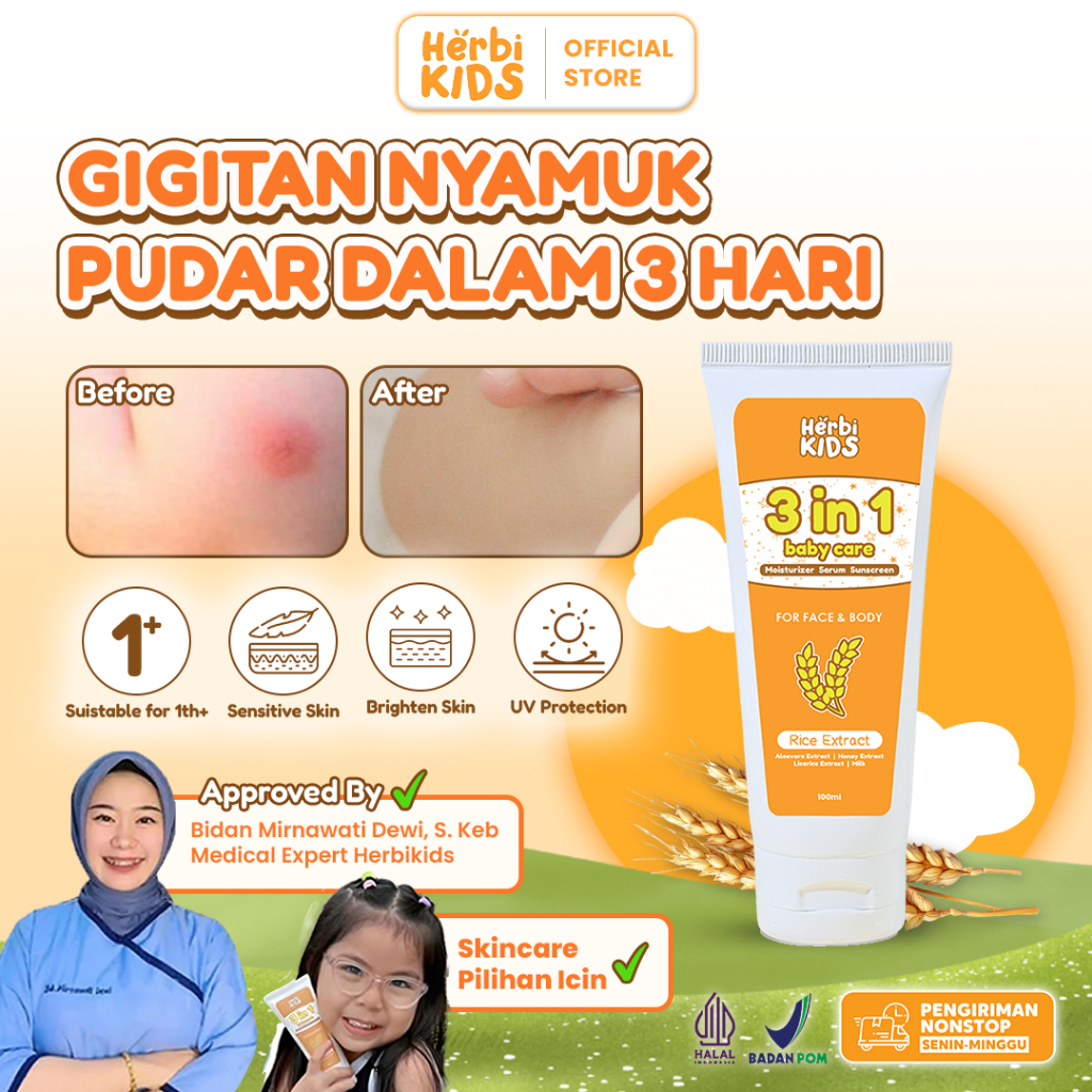 Herbikids - 3in1 Face And Body Lotion 100ml - Krim Pelembab dan Anti Iritasi - Uv Protection (BPOM)