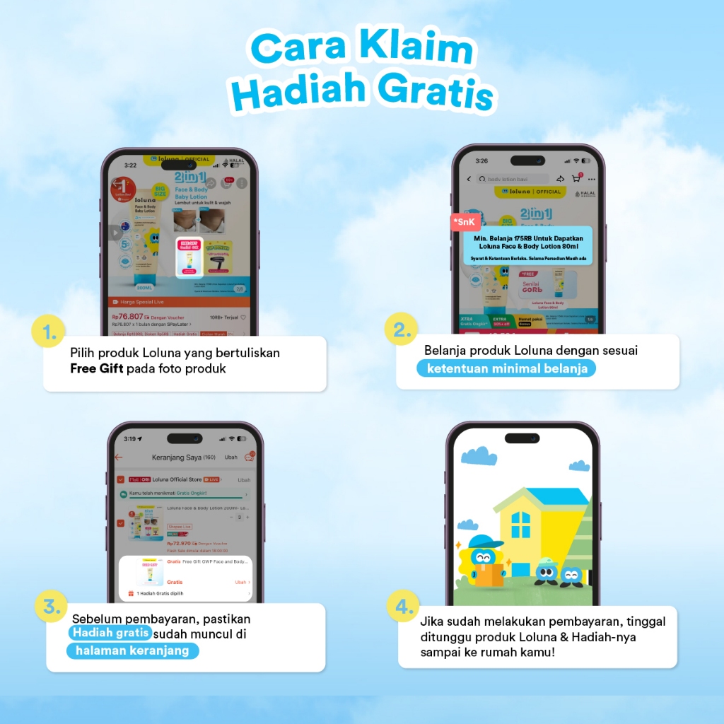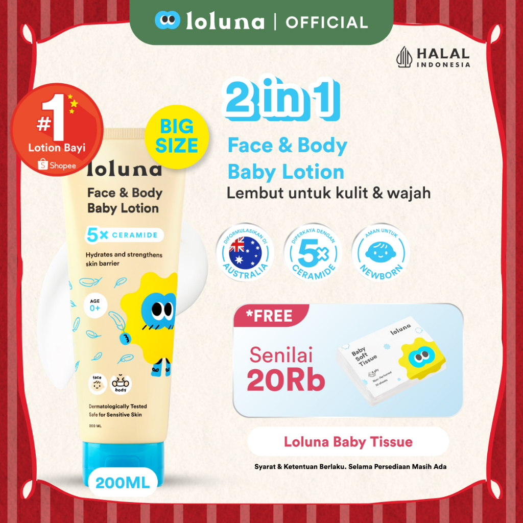 Loluna Face & Body Lotion 200ml- Losion/Krim Wajah & Badan Bayi Anak