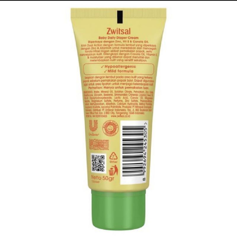 Zwitsal Baby Cream Natural Daily Care Extra Zinc Bayi 50 ml