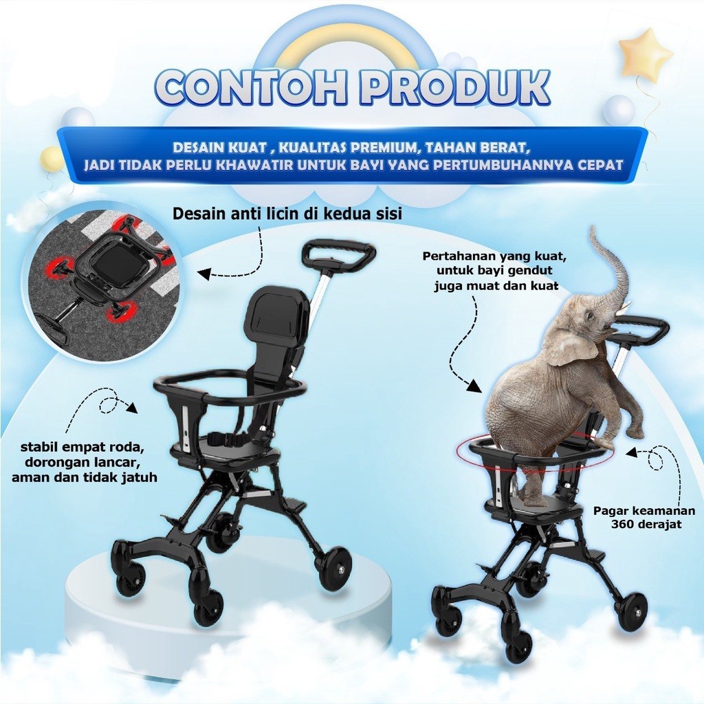MAGIC STROLLER Bayi Lipat 2 Arah Stroller Travel Kereta Dorong Bayi Portable Kabin Size Cabin Motor Size Ringan g