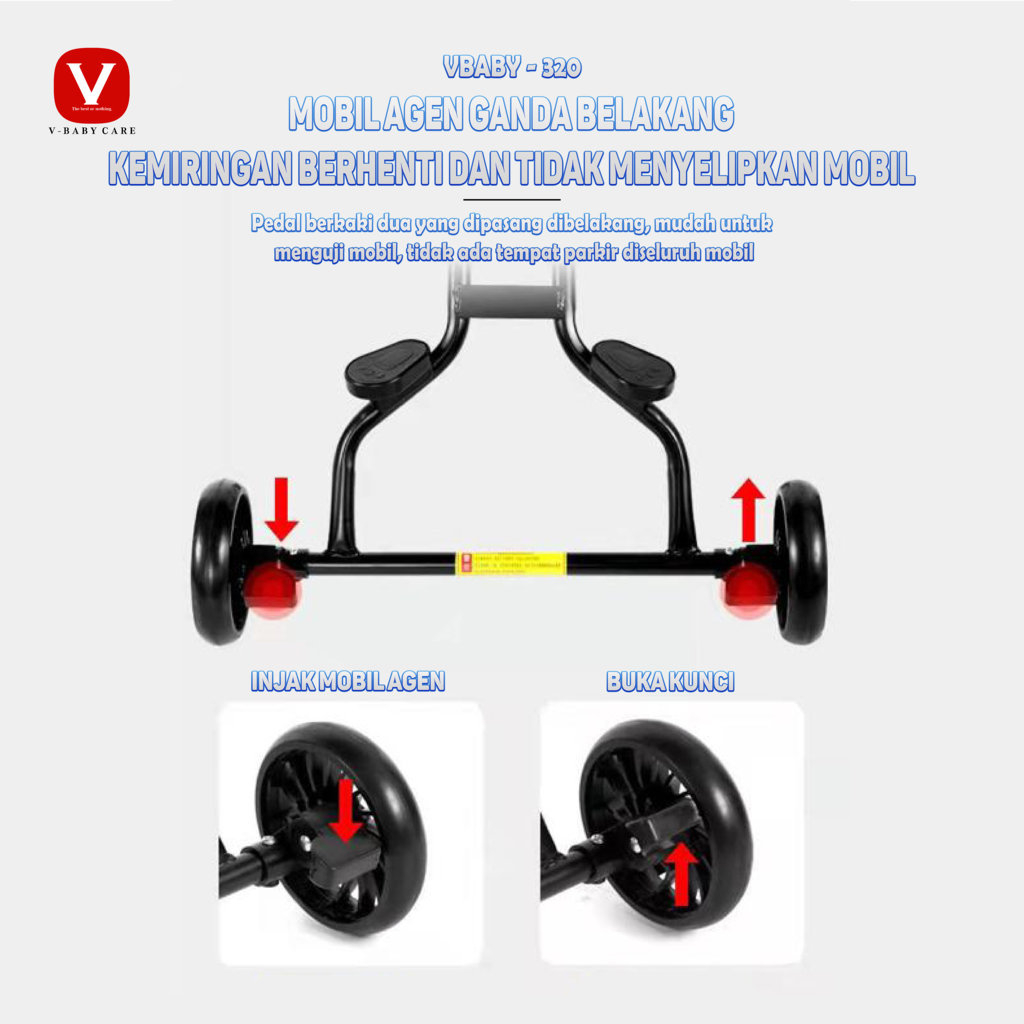 VBABY CARE Kereta Dorong Datar Berbaring Dapat Dilipat , Dua Arah, Stroller VBABY-320