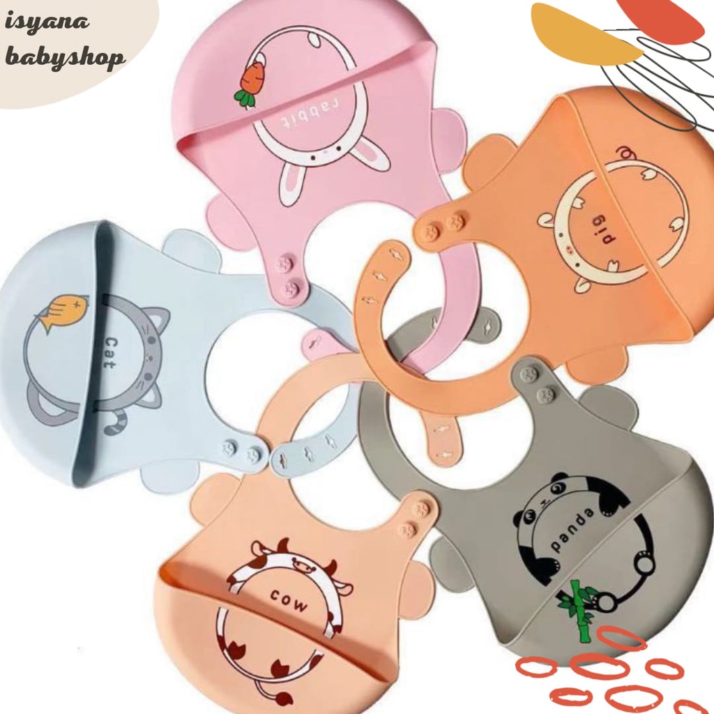 Celemek Bayi Slabber Bayi BIB Bahan Full Silikon Mudah Dibersihkan