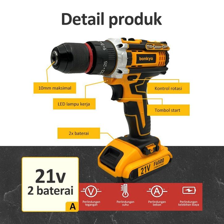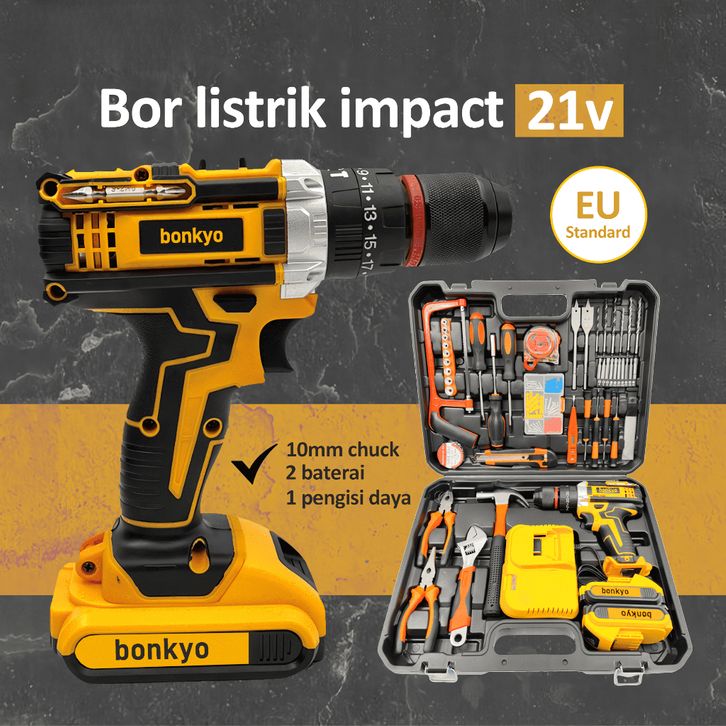 Bonkyo Mesin Bor Baterai Bor Impact Listrik Kotak Peralatan Multifungsi Bor Baterai Ori Makita Listrik 1 Set Lengkap