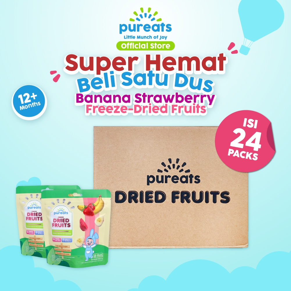 Pureats Freeze Dried Fruits - Snack Buah Kering Cemilan Sehat Alami Anak Bayi - Carton 24 Pcs