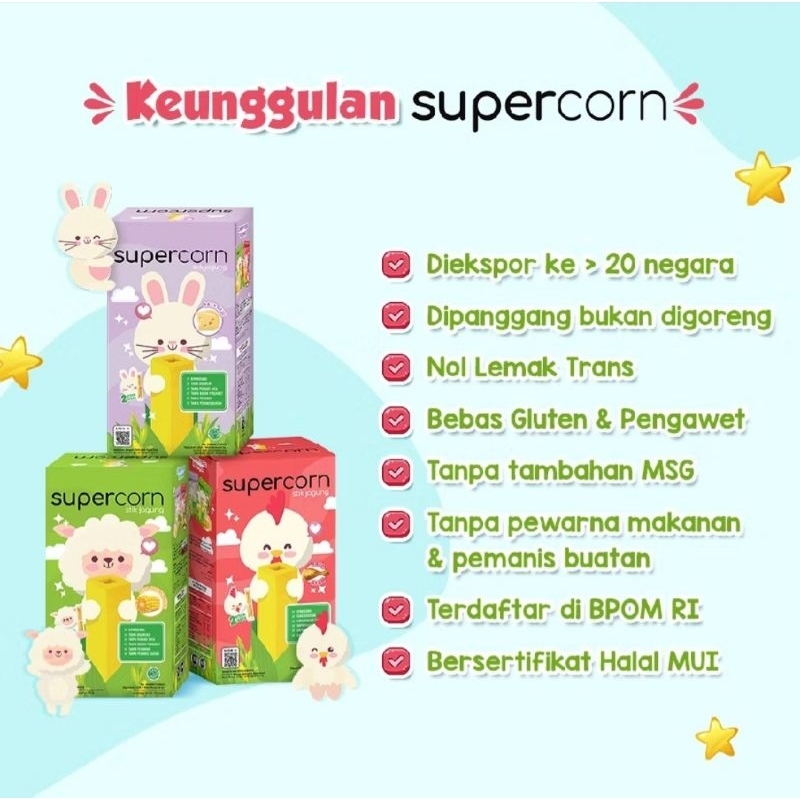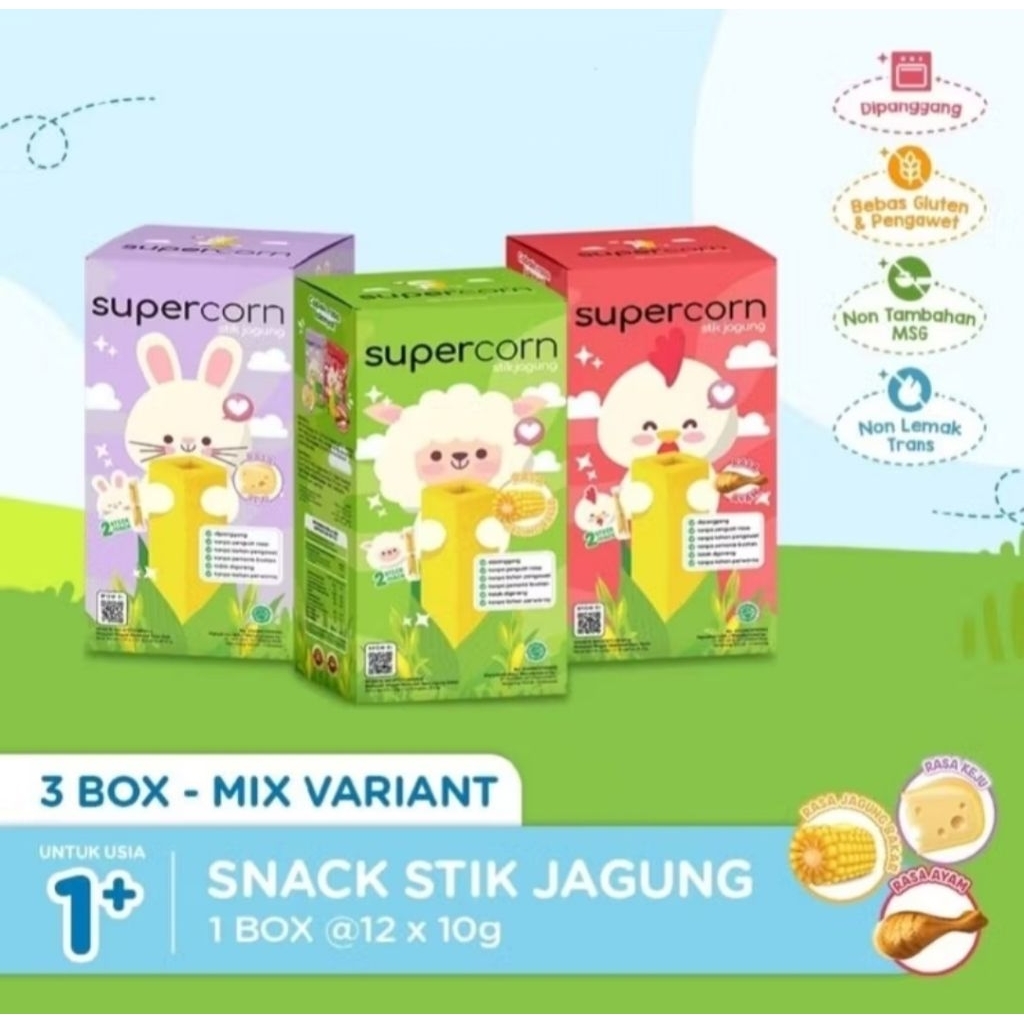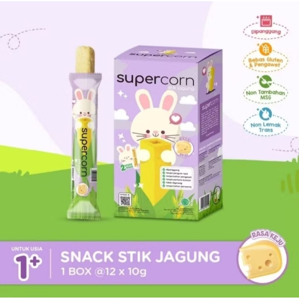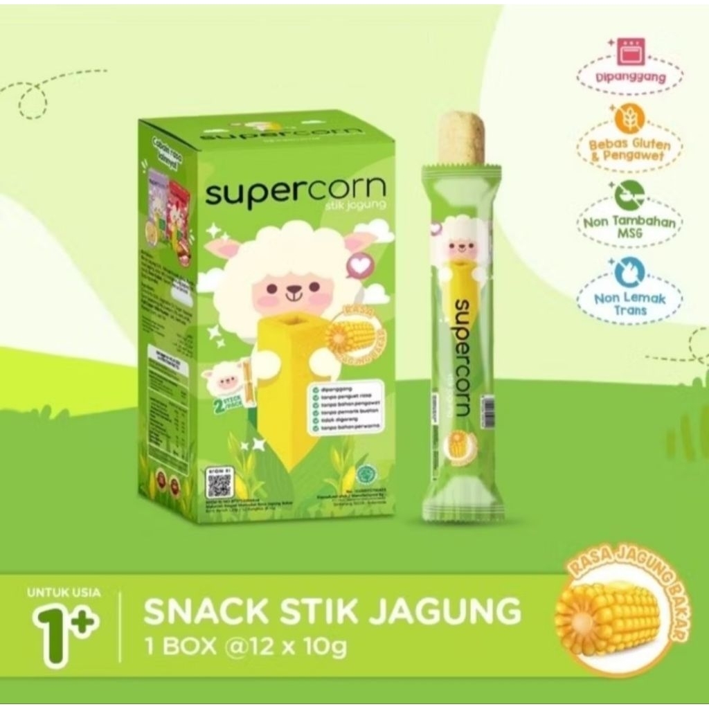 SUPERCORN STIK JAGUNG 120G (1BOX ISI 12PCS X 10G) - SNACK CEMILAN BAYI / ANAK
