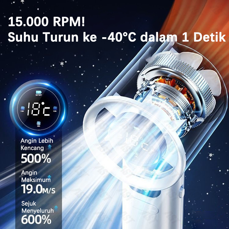 Kipas Angin Portable 120 gigi Turbo Mini Tangan Genggam Mini Fan Tampilan daya LCD
