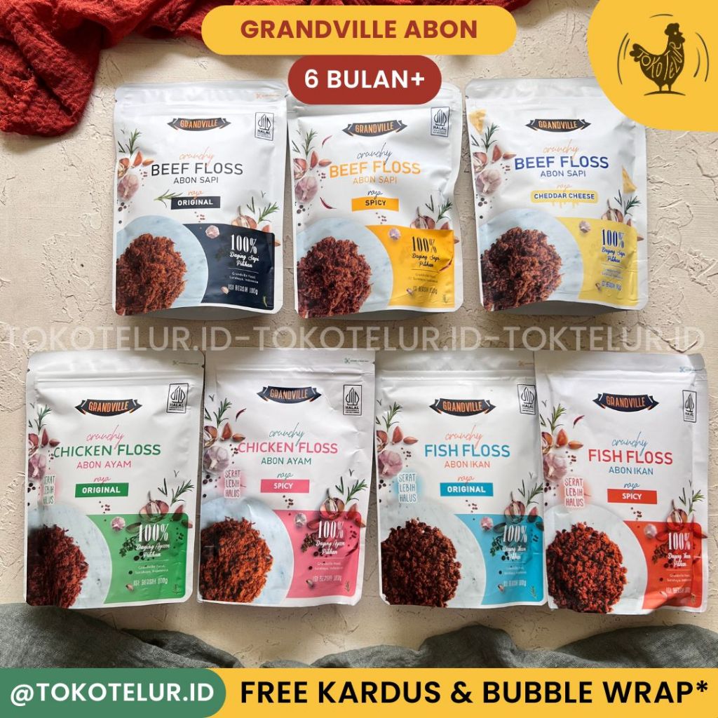 Grandville - Abon Sapi Ayam dan Ikan ASLI Crunchy | Makanan Instan SNACK untuk Anak Bayi MPASI